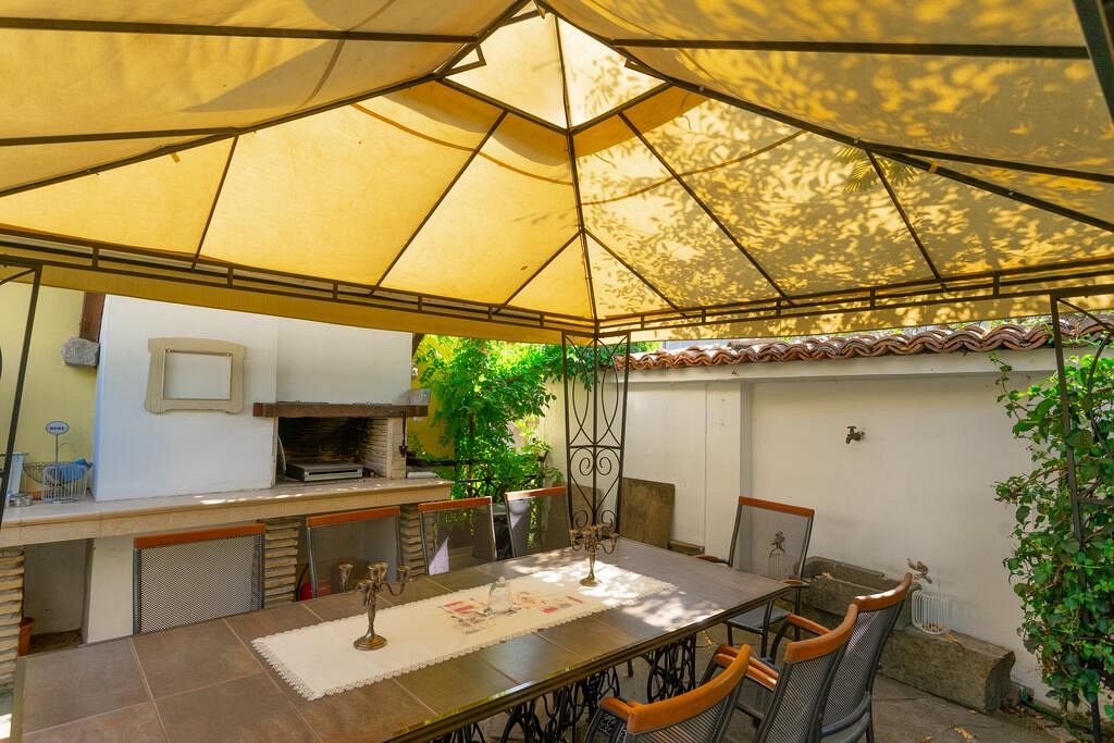 Къщата има собствен двор 60 кв м, който е добре поддържан - с градина с трайни насаждения; барбекю на дървени въглища, шатра с маса за хранене с 12 стола; зона за отдих.
