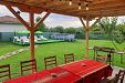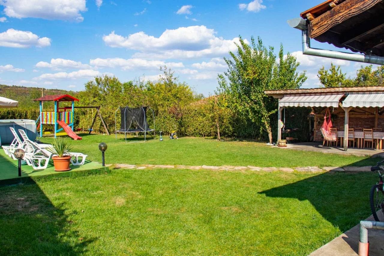 Дворът е обезопасен и озеленен. Тук ще намерите и голям навес с маси и барбекю, където можете да си изпечете вкусни месца.