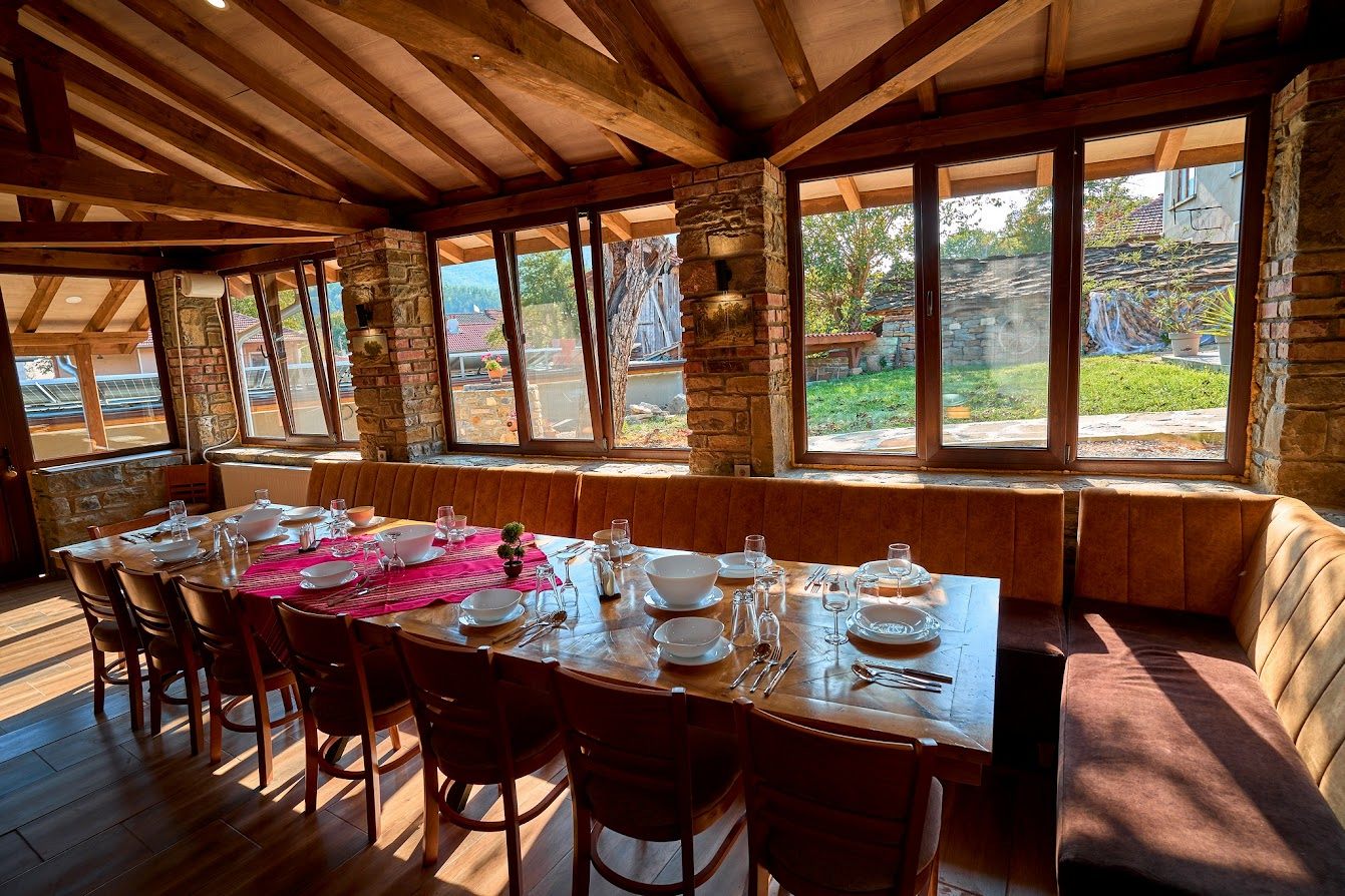 На Ваше разположение е целогодишно работещ ресторант "Симида" със 120 седящи места, като предлагаме 2 варианта за изхранване: - по меню на ресторанта или приготвяне на специалитети по Ваш избор. Възможност за изготвяне на индивидуална оферта за по-големи групи; - наемане на маса/маси за целодневно ползване, без кухня (възможно е да има и други посетители в ресторанта), като гостите могат да си приготвят храната във всяка една от къщите - при внасяне на храна се заплаща такса почистване 10 лв./5.11 €, на човек, на ден. Ресторантът е подходящ за различни приятелски и семейни събирания, както и сватбени тържества - на 20 м се намира красива църква. Ресторантът е известен в района с разнообразното си меню и всекидневно приготвени вкусни домашни гозби.
