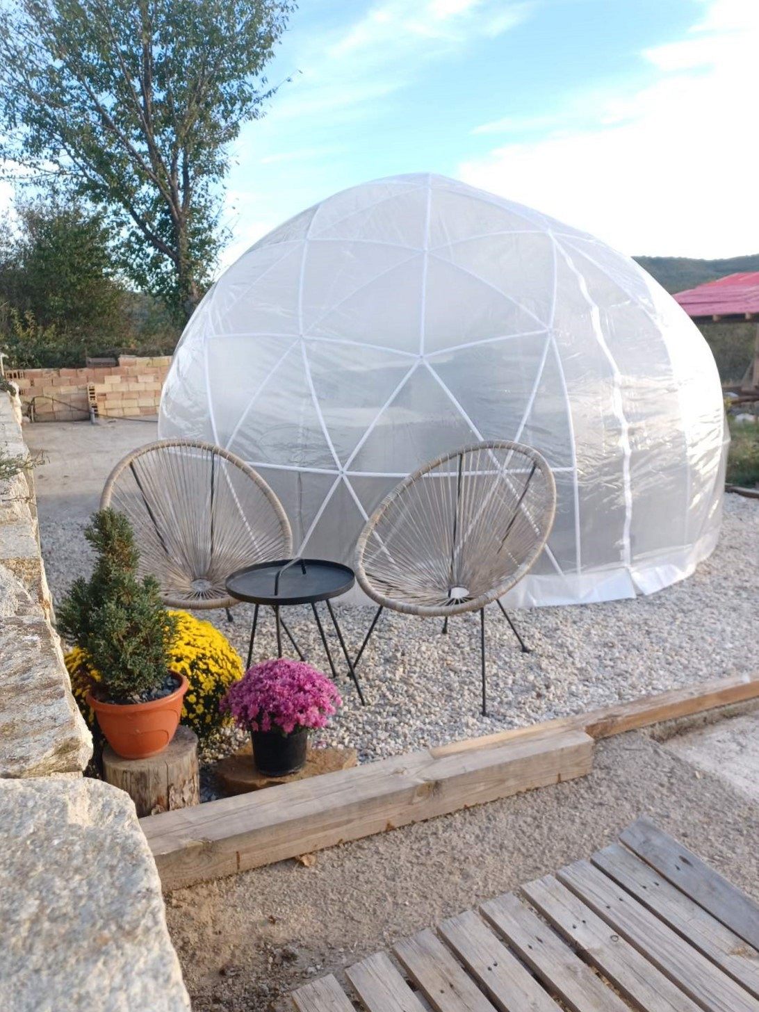 Дворът е обширен, затревен и слънчев, с чудесни гледки: в една посока - към язовира, а в друга - към вековните церови и букови гори на Средна гора.