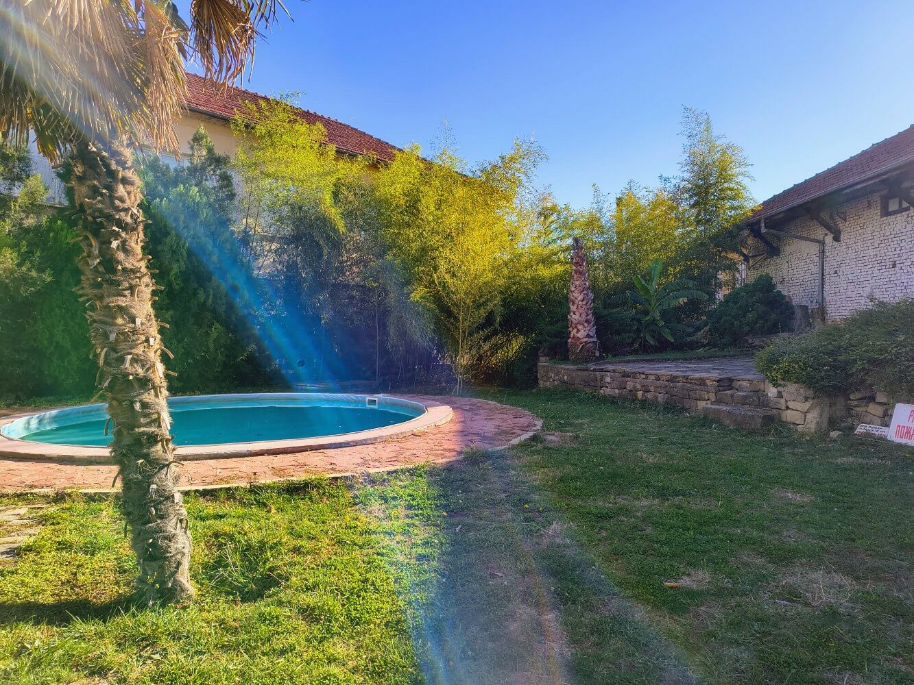 В обширния двор, заобиколен от палми, има басейн с пречиствателна станция, както и закрита външна трапезария с колоритно барбекю и пещ.