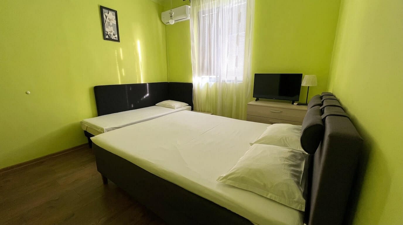 Етаж 2 - 8+1 места: 1 двойна стая; 1 двуспален апартамент 4+1 места, с хол с диван и кухненски бокс с хладилник, плот и мивка - всички със собствен санитарен възел с баня и тоалетна; 1 двойна стая с прилежащ санитарен възел.