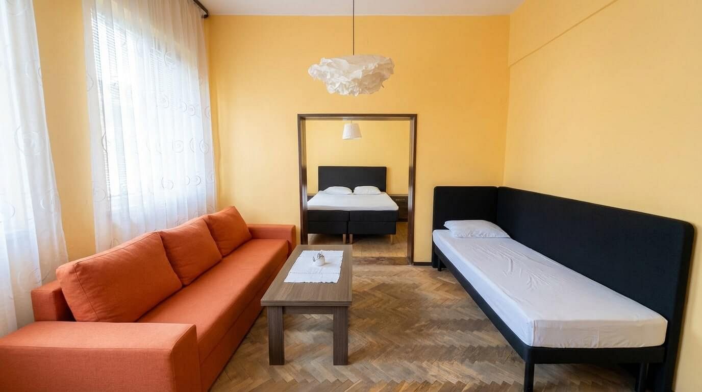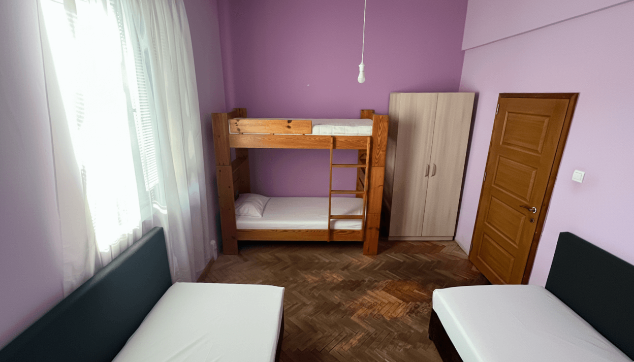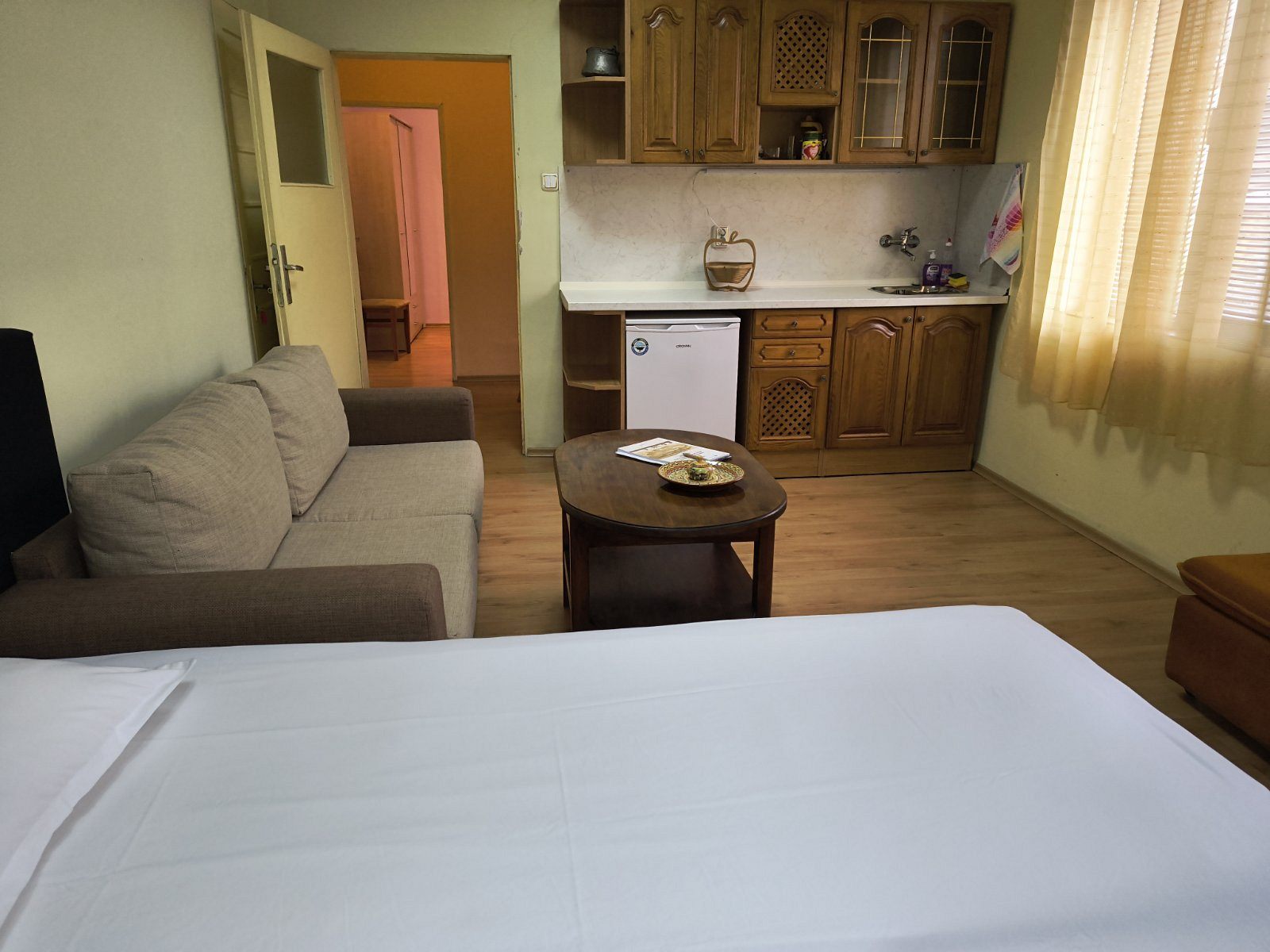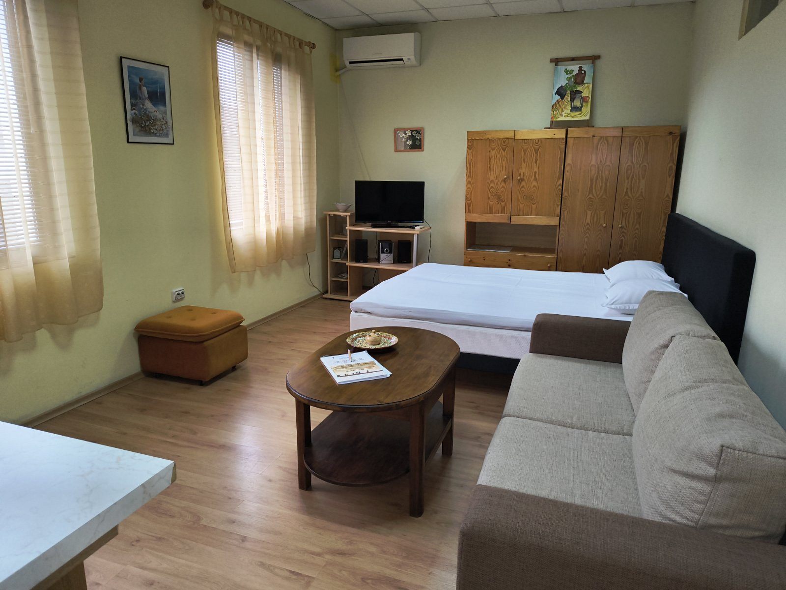 Етаж 1 - 12+2 места: - 1 двойна стая; 1 тройна стая; 1 студио 3+2 места, всички със собствен санитарен възел и 1 стая за 4 гости с прилежащ санитарен възел;