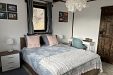 - Спалня с голямо легло, четирикрилен гардероб, работен кът и допълнително място за почивка на прозореца;