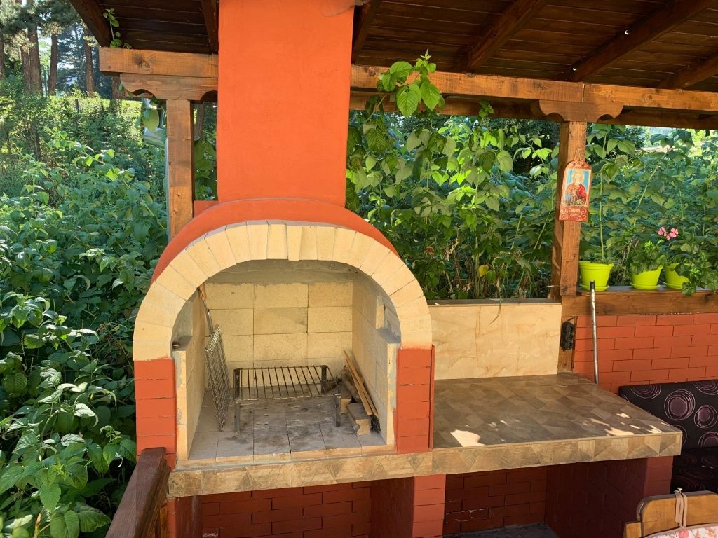 На верандата можете да се насладите на тишина, спокойствие и чист планински въздух, а на барбекюто - да си приготвите вкусна скара и да се насладите на прекрасните прохладни вечери и на красивия изглед към планината, града, градината и вътрешния двор с малините.