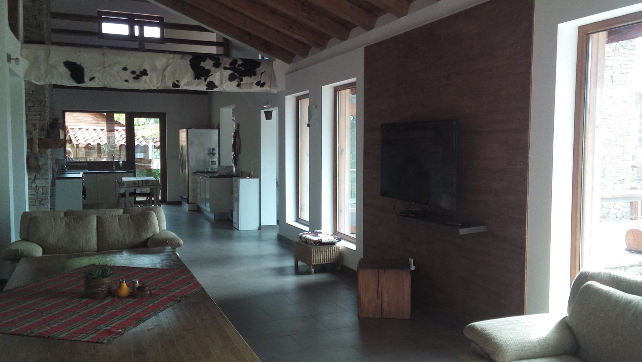 Разполагаме с просторен дневен тракт с мека мебел, 2 камини, трапезен кът и напълно оборудвана кухня. Свободното си време може да запълните с игра на тенис на маса.