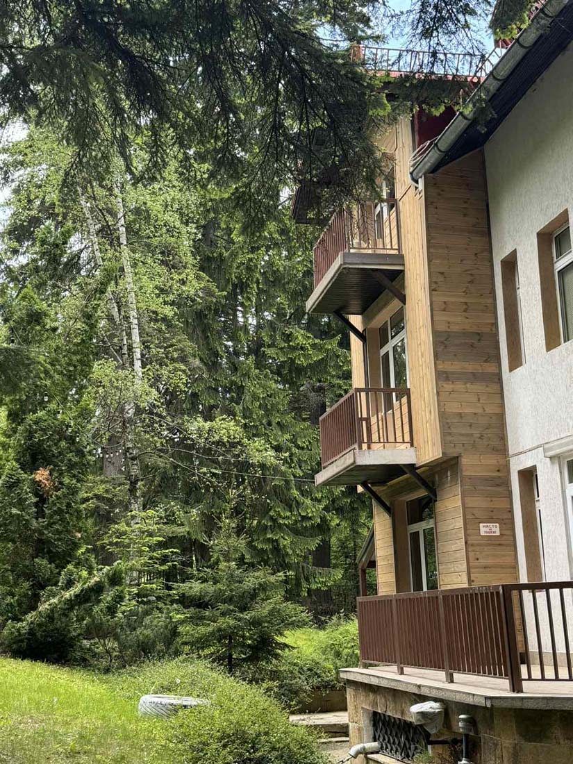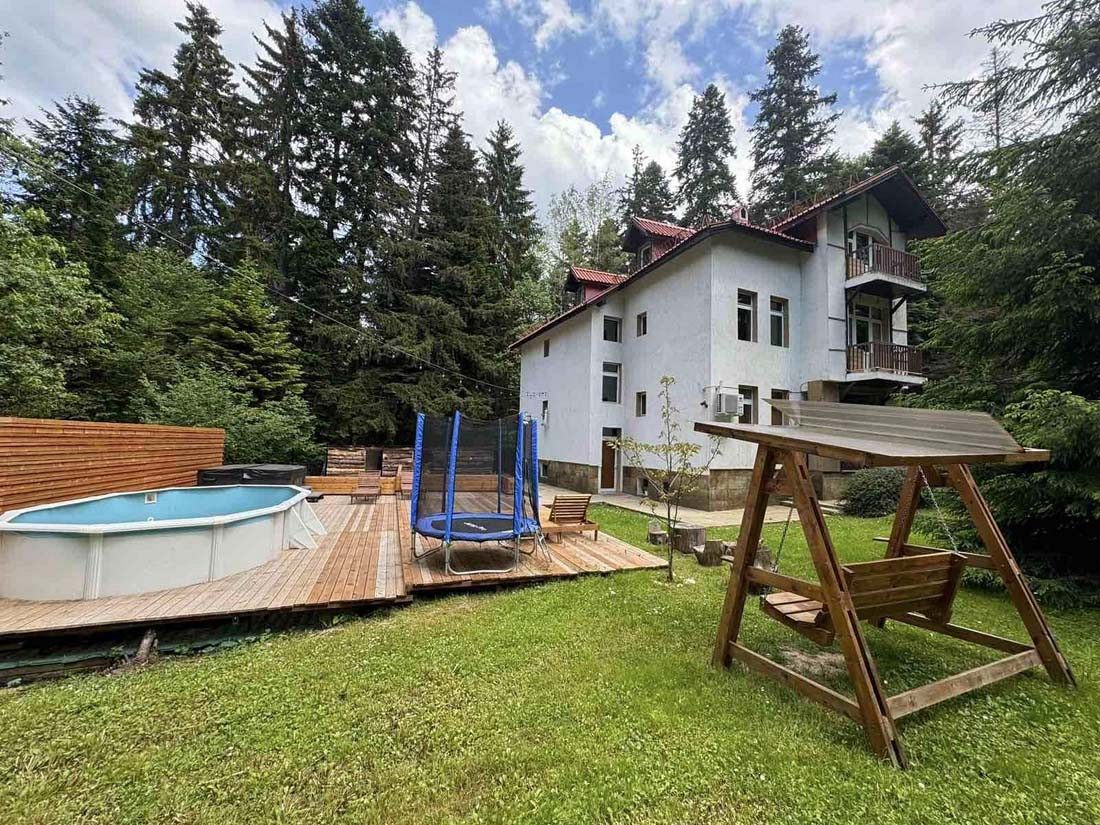 Вилата е триетажна къща, с автентичен алпийски дизайн, с голям двор от 2000 кв м.