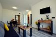 - Всекидневна с портманто, кът за почивка с двоен, разтегателен диван, телевизор с LED дисплей и 75 IPTV канала, трапезна маса с