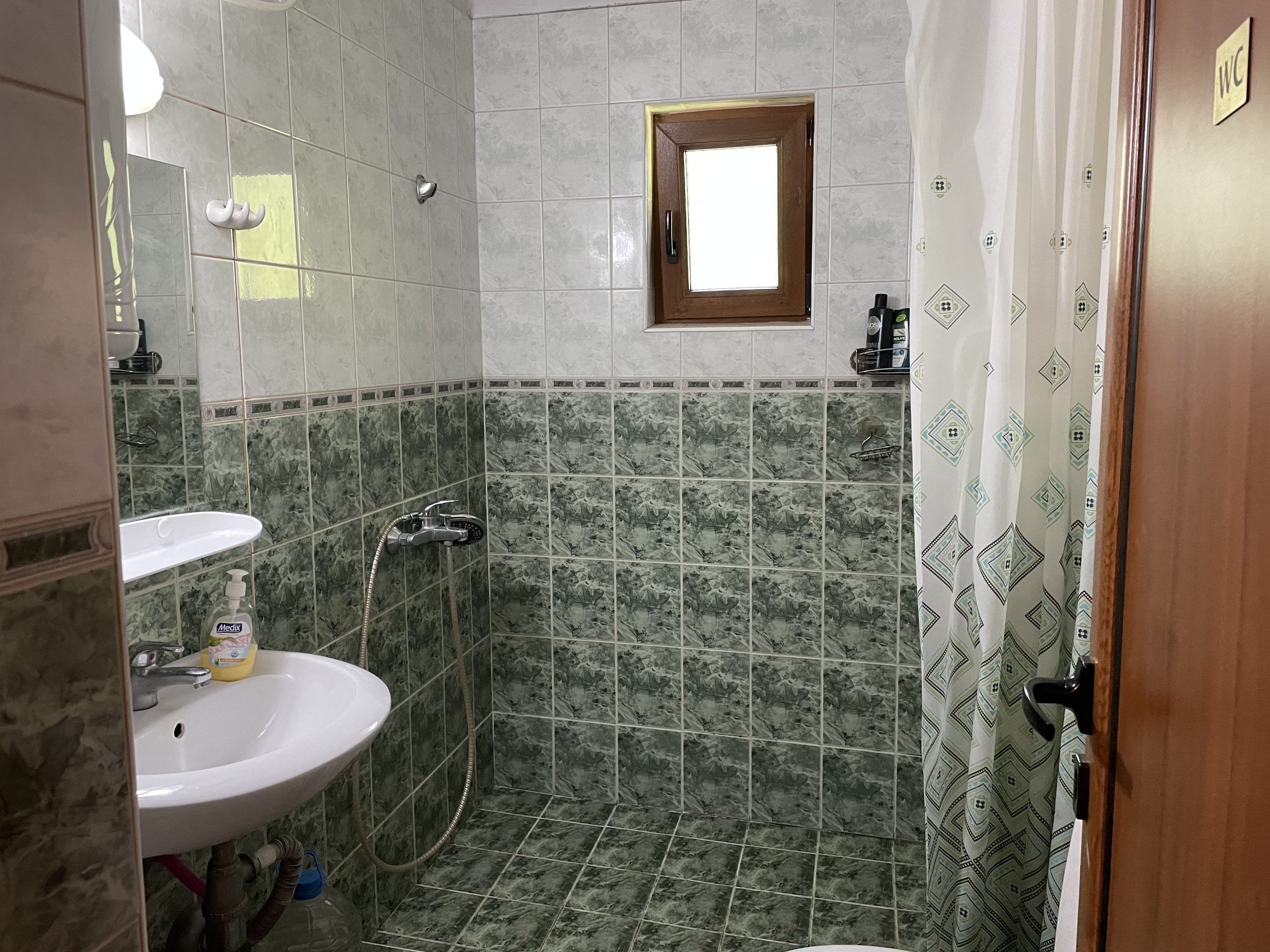 Първи етаж - 2 стаи, всяка за 4 гости; 2 санитарни възела с баня и тоалетна.