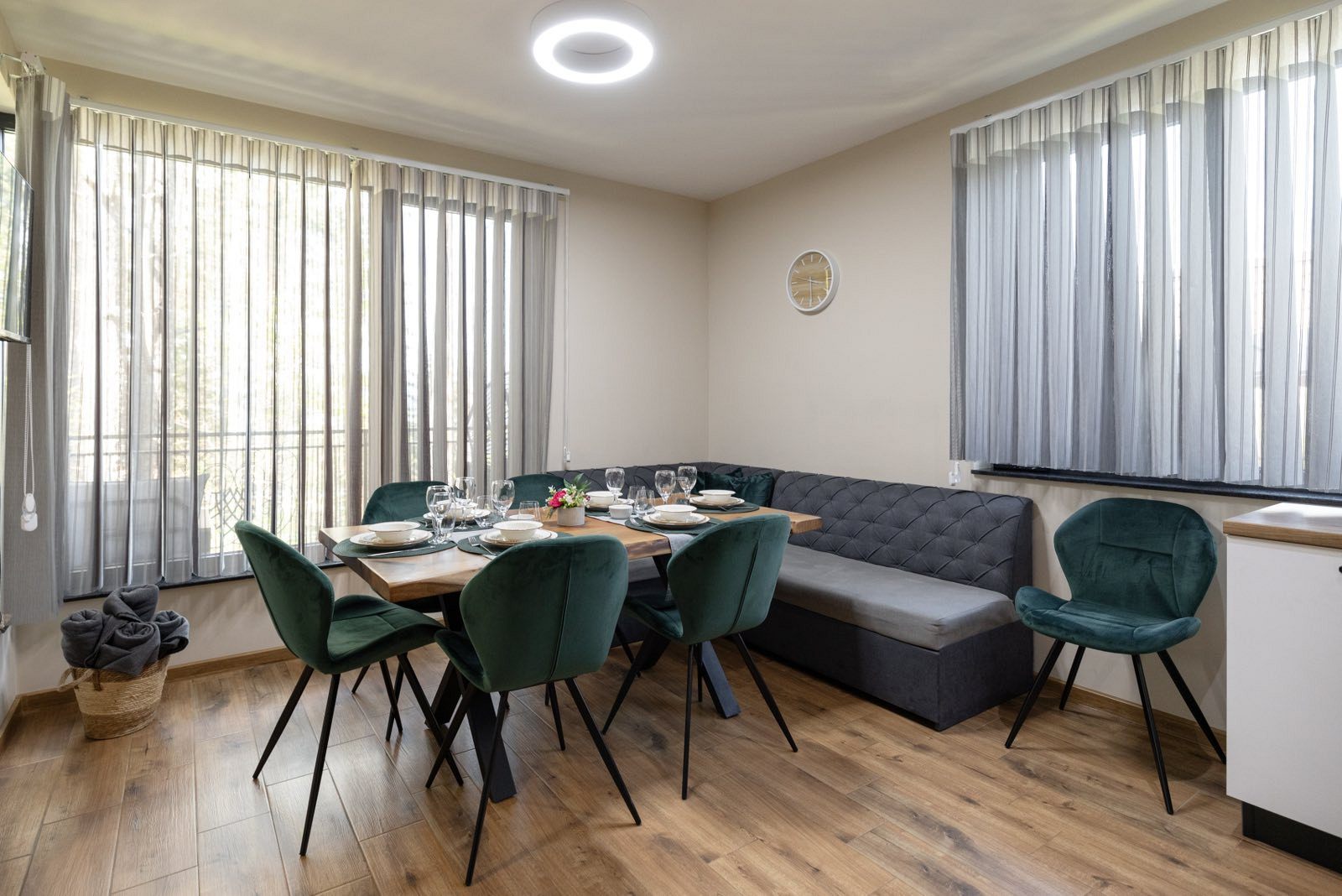На разположение на гостите е трапезария с трапезна маса 90/170 см и 6 стола около нея; напълно оборудвана кухня (хладилник, печка, котлони, кафемашина с капсули, електрическа кана, тостер, миксер, уред за фрапе, прибори, чаши, чинии и всякаква посуда). Холът е перфектен за релакс и почивка. От него се излиза на тераса с маса и 2 стола, с прекрасна гледка към язовир Батак.