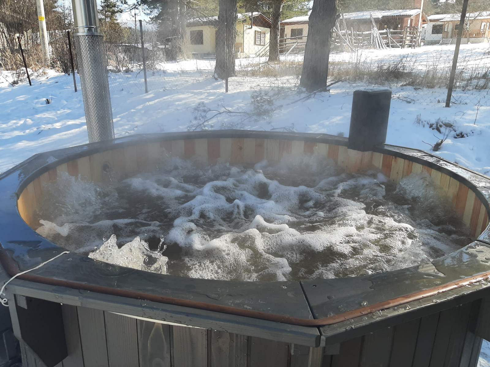 Комфортът на всички гости на комплекса се допълва от външна СПА зона, приканваща Ви да се впуснете в пътешествие към спокойствието - целогодишно джакузи и кедрова сауна, излъчва успокояващ аромат.