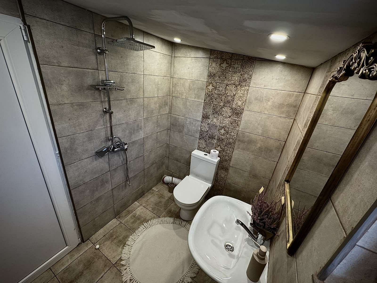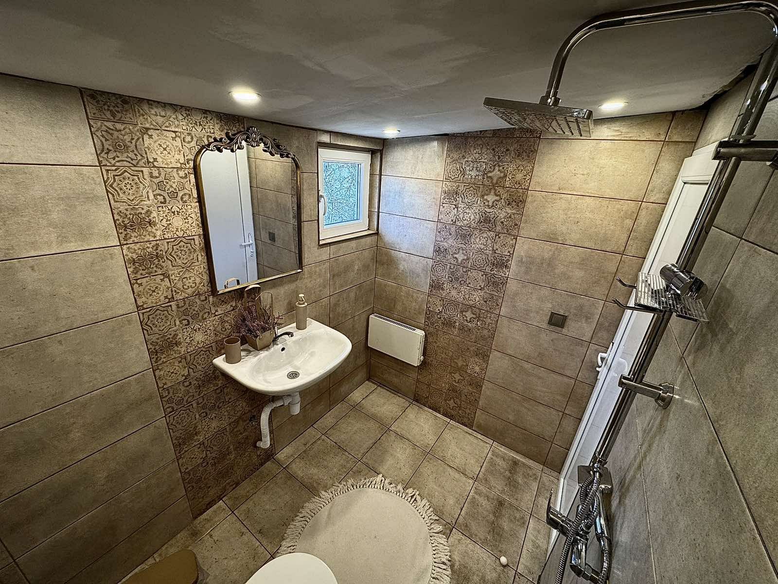 Предлагаме 3 спални помещения - 2 двойни стаи и 1 фамилна стая за 4 гости; допълнително настаняване на двуместен диван и походно легло; 2 санитарни възела с баня и тоалетна.