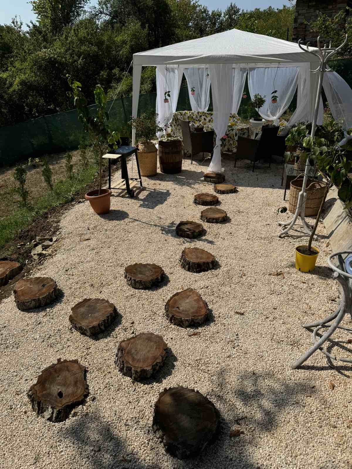 На разположение на гостите ни са просторен озелен двор с кокетно аранжирана градина, шатра с барбекю кът, целогодишно джакузи; сезонен басейн с чадъри и шезлонги; кътове за релакс с люлка и хамак, детски кът с батут.