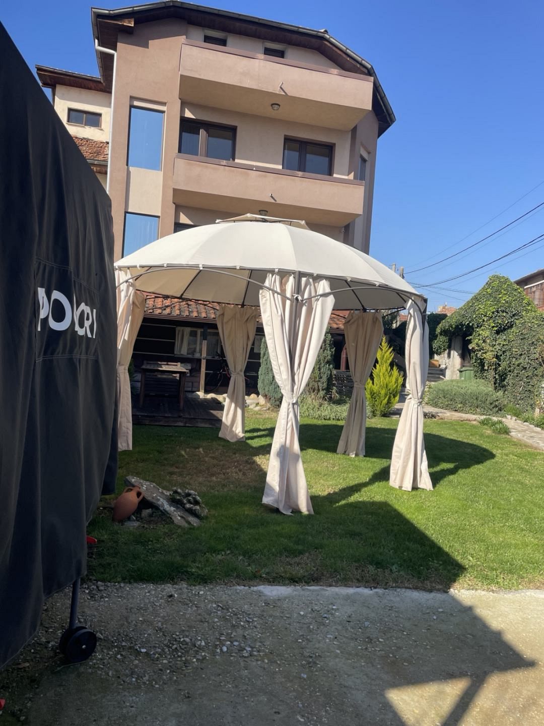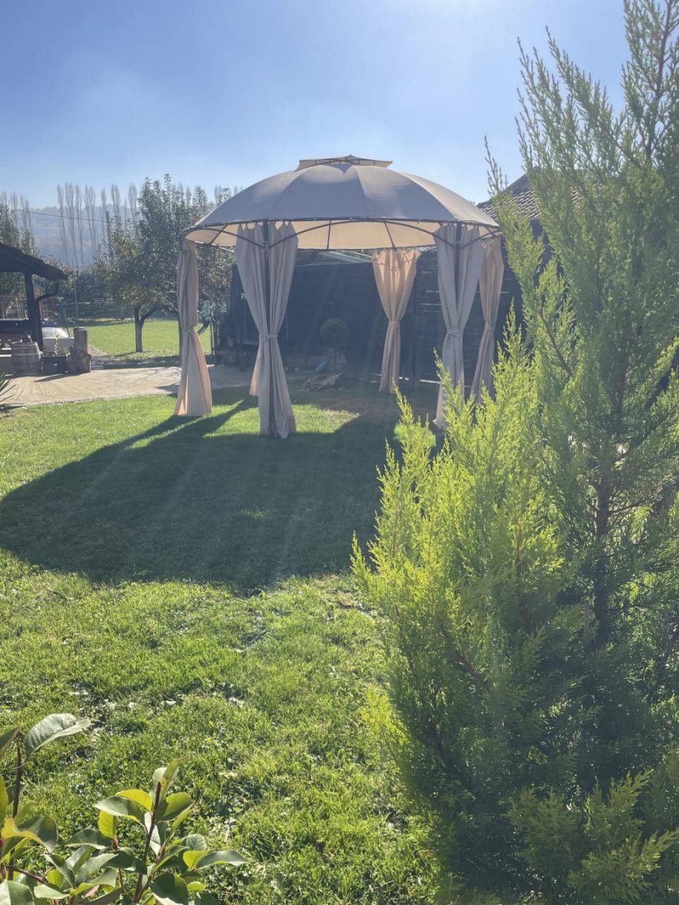 Чудесен двор, потънал в зеленина; камина; мека мебел, подходяща за външни пространства - всичко това предразполага за почивка и релакс на чист въздух. Можете да прекарате приятни вечери с приятели пред външната камината и да се насладите на романтичната обстановка на двора, за което допринася и допълнителното осветление.