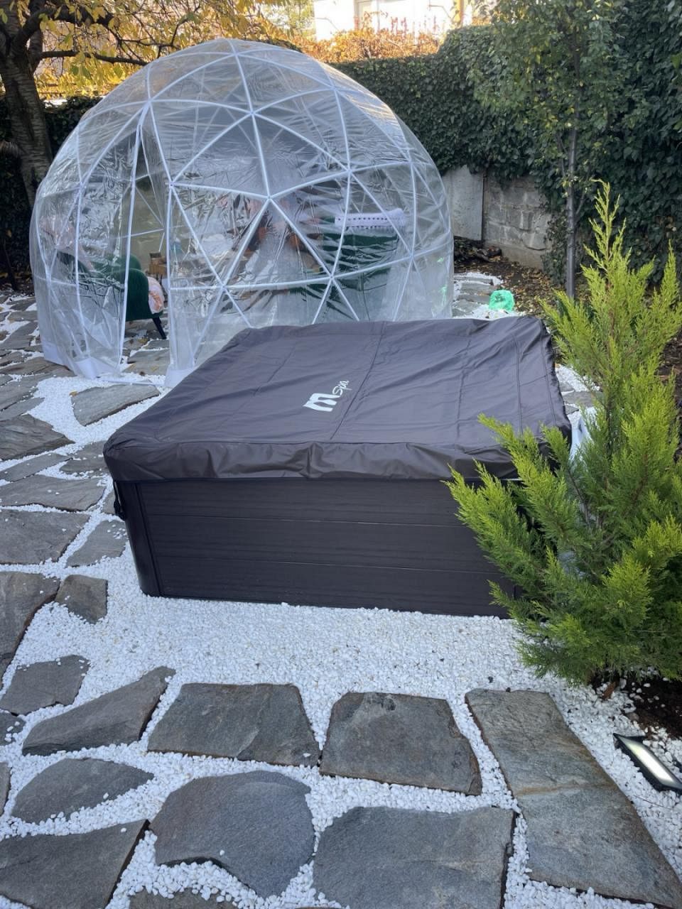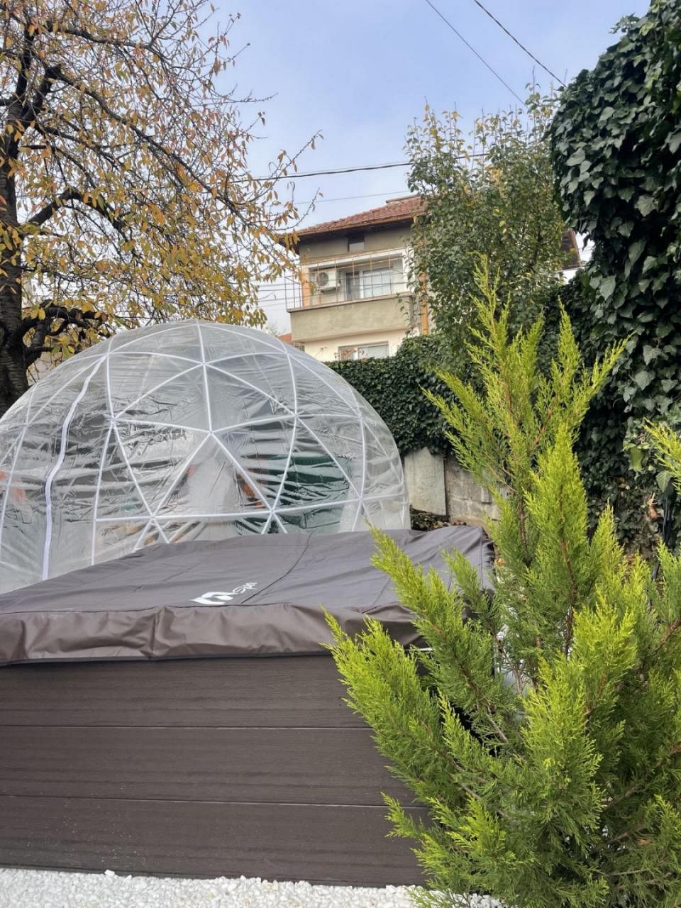 Открийте пълно спокойствие в нашата уникална външна спа зона, съчетаваща природа, уют и романтика. Под прозрачния панорамен купол ще се насладите на джакузи с нежна светлина, релакс кът с гледка към двора и магична „crystal light“ атмосфера вечер. Към това добавяме и просторната финландска сауна, която ви гарантира истинско възстановяване и комфорт през всеки сезон. Идеалното място за отпочиване, презареждане и специални моменти.