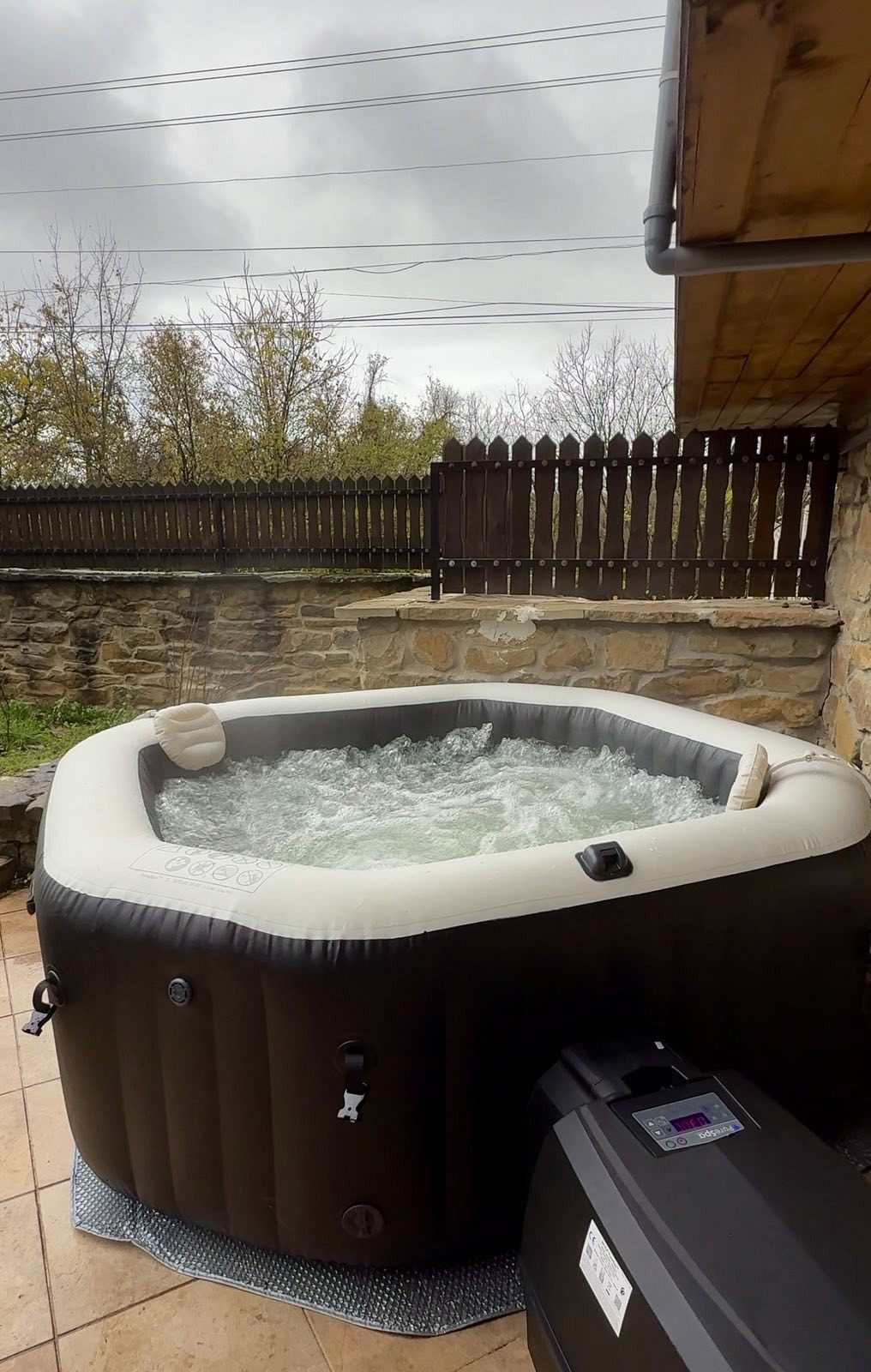 Къщата притежава голям двор с градина, тераса с ратанова мебел, пособия за барбекю (на дървени въглища) и сезонен отопляем открит басейн с детска част и шезлонги, както и външно целогодишно джакузи.