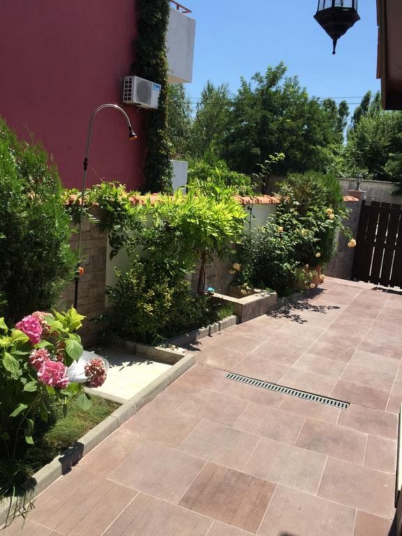 Пред всяка вила има веранда с ратанови мебели и малка уютна градинка.