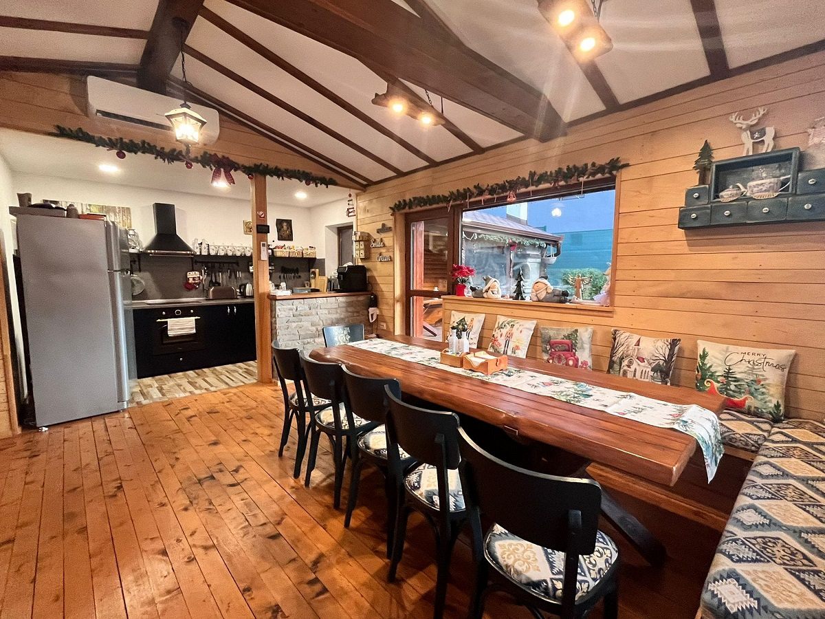 - През топлите месеци предпочитано място е външната зона със зидано барбекю на дървени въглища.