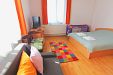- Просторна всекидневна с камина, мека мебел (разтегателен диван за двама), телевизор със сателитна телевизия, Wi-Fi, трапезария с маса за 10-12 човека, собствен санитарен възел с баня и тоалетна, както и допълнителен фотьойл с функция „сън“ за един гост.