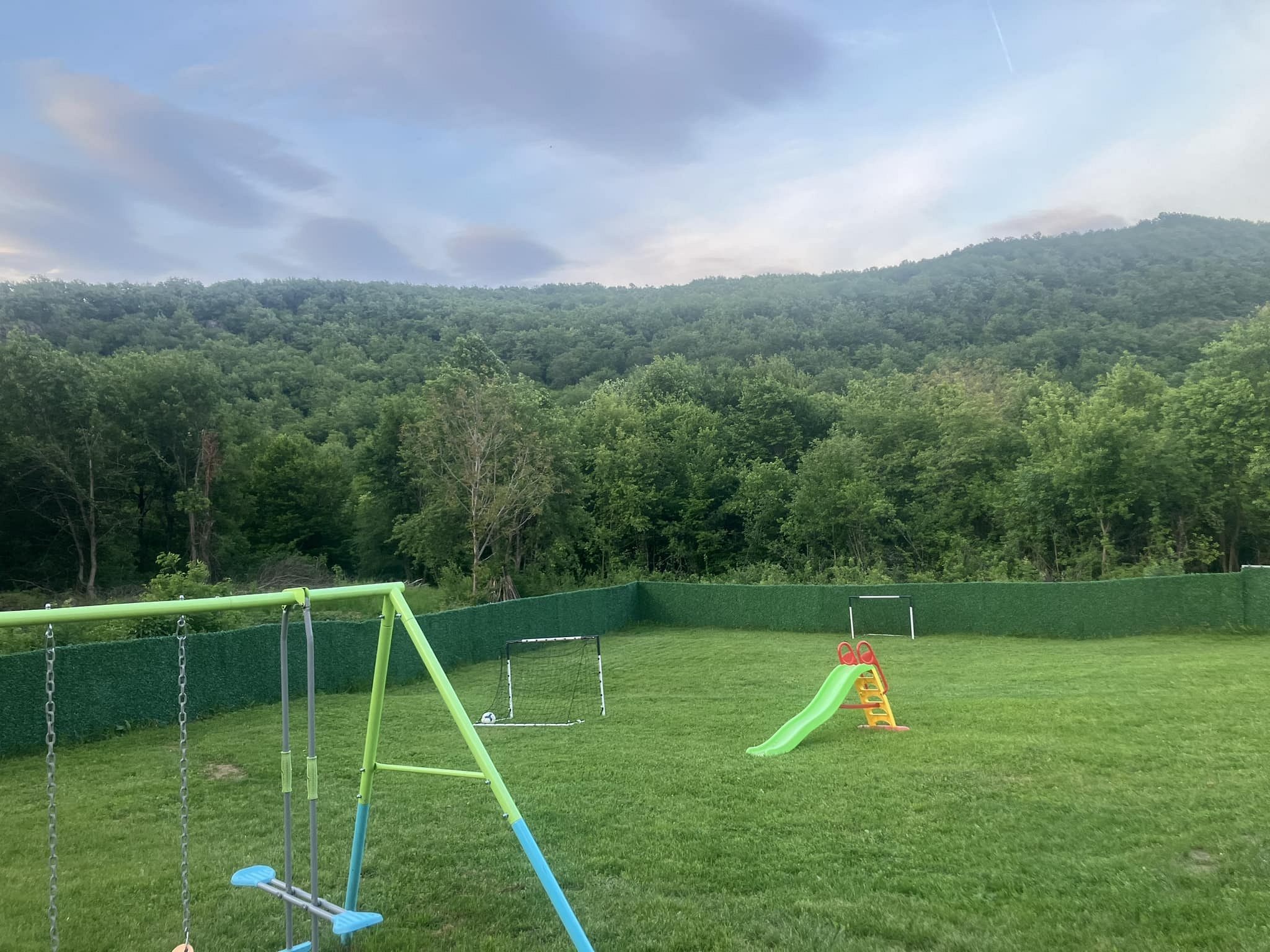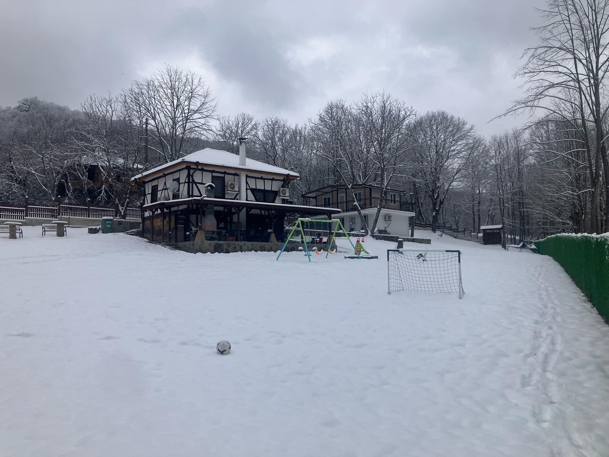Пред старата къща има веранда с външно барбекю и кът за хранене. От нея се разкрива уникална гледка към гората и детския кът, предвиден за забавление на малчуганите.