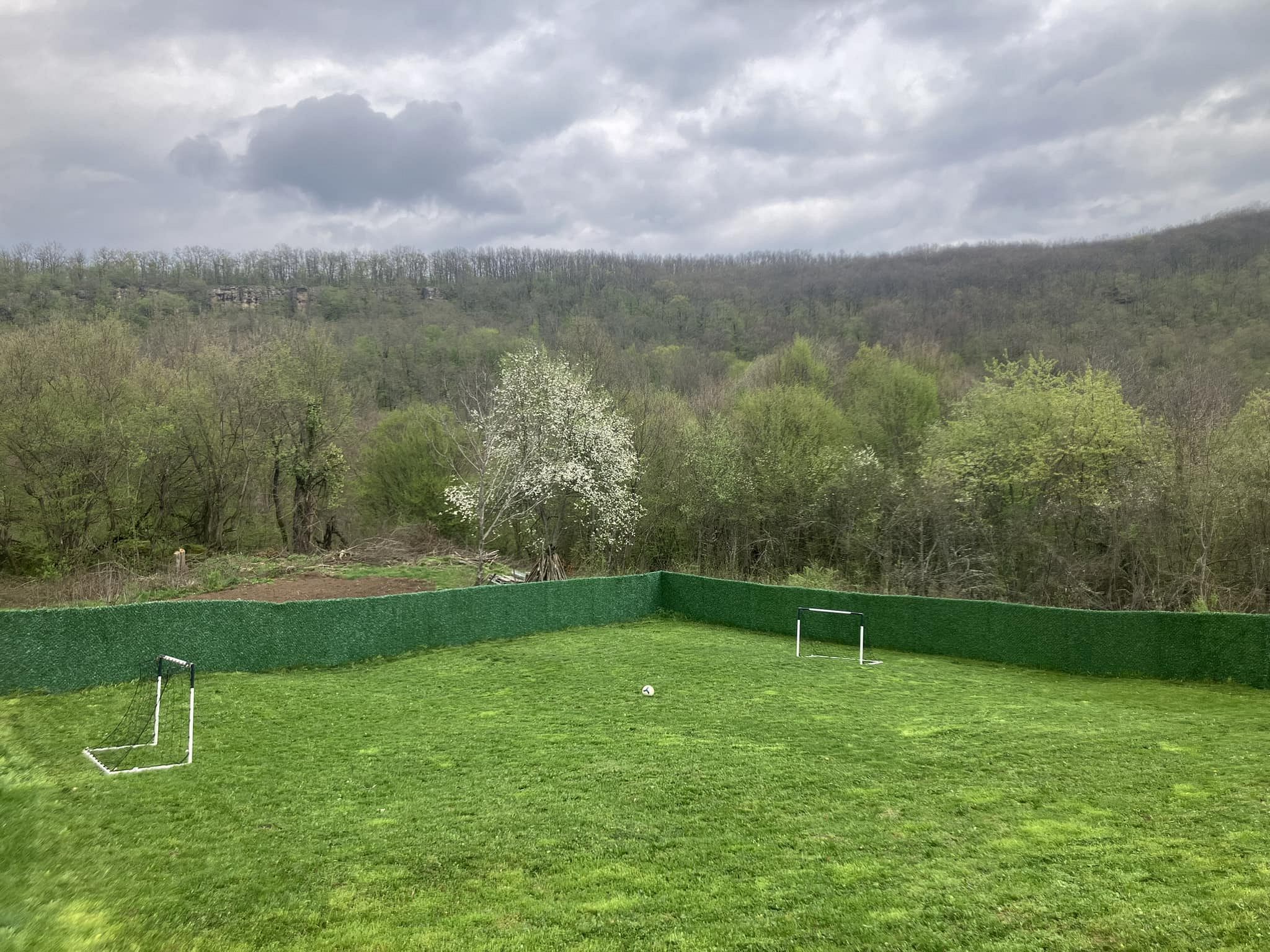 В големия двор (между двете къщи) ще откриете 8-местно топло джакузи и отопляем (с термопомпа) външен басейн, където можете да релаксирате през всеки сезон. А мини-игрището за футбол ще поддържа спортния ви дух.