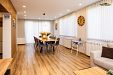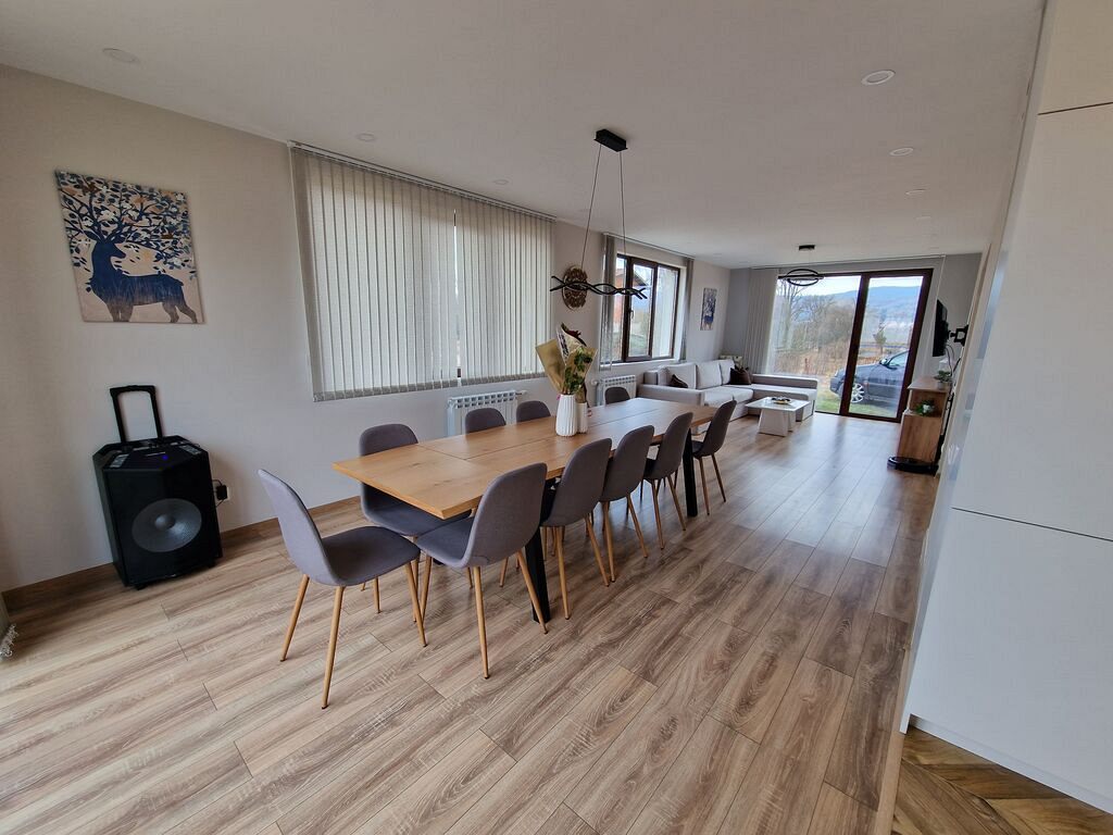 На разположение на всички гости са модерна трапезария; кът с мека мебел и телевизор; напълно оборудвана кухня с всички необходими уреди за приготвяне на храна.