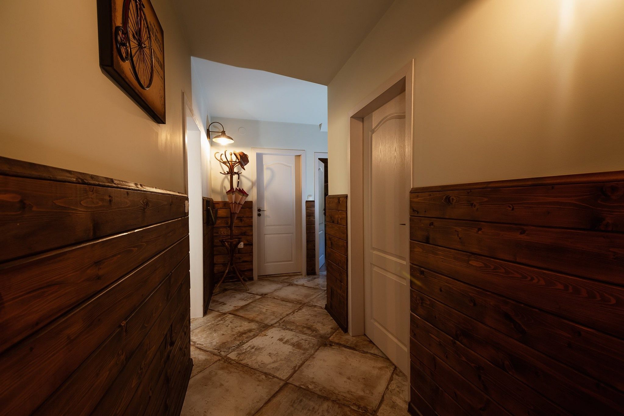 - 2 Двойни стаи с голяма спалня и 1 детско легло; едната от тях със собствен санитарен възел, а другата - с прилежащ външен санитарен възел.