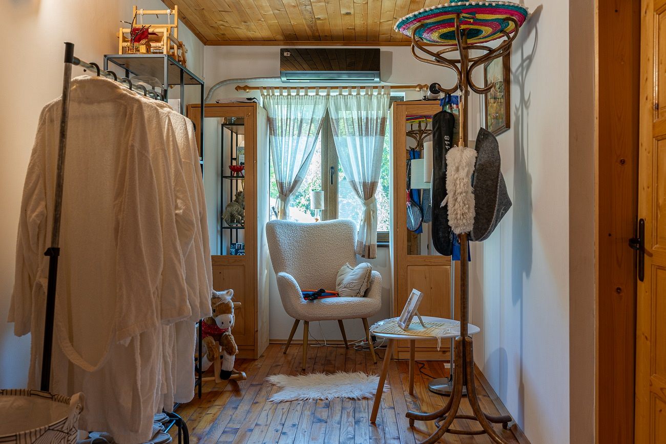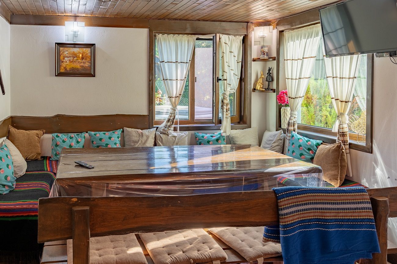 Къщата съчетава традиционен битов стил с всички съвременни удобства, за да осигури комфортен престой през всеки сезон.
