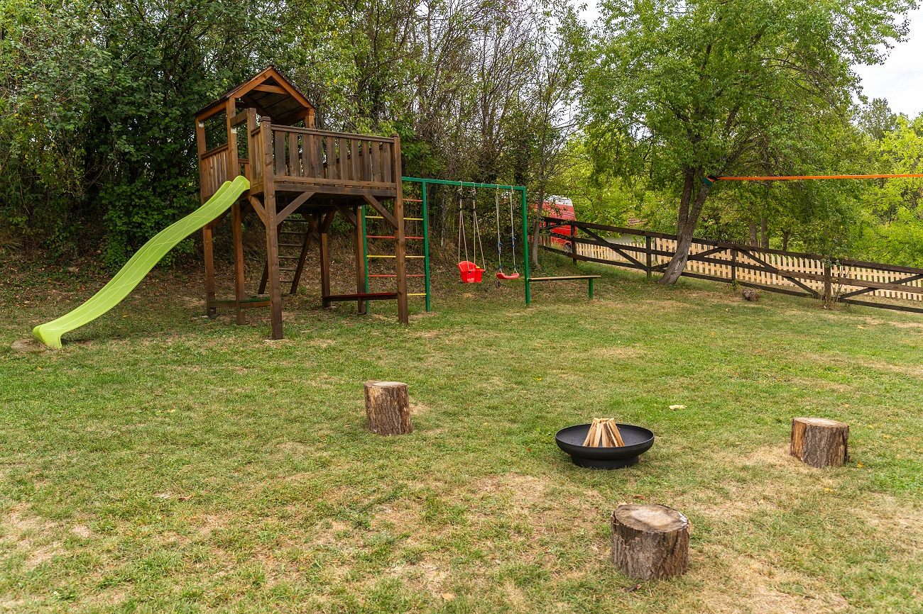 - Детски кът със съоръжения за игра - пързалка, люлки и батут за малките гости, където могат да се забавляват на воля;
