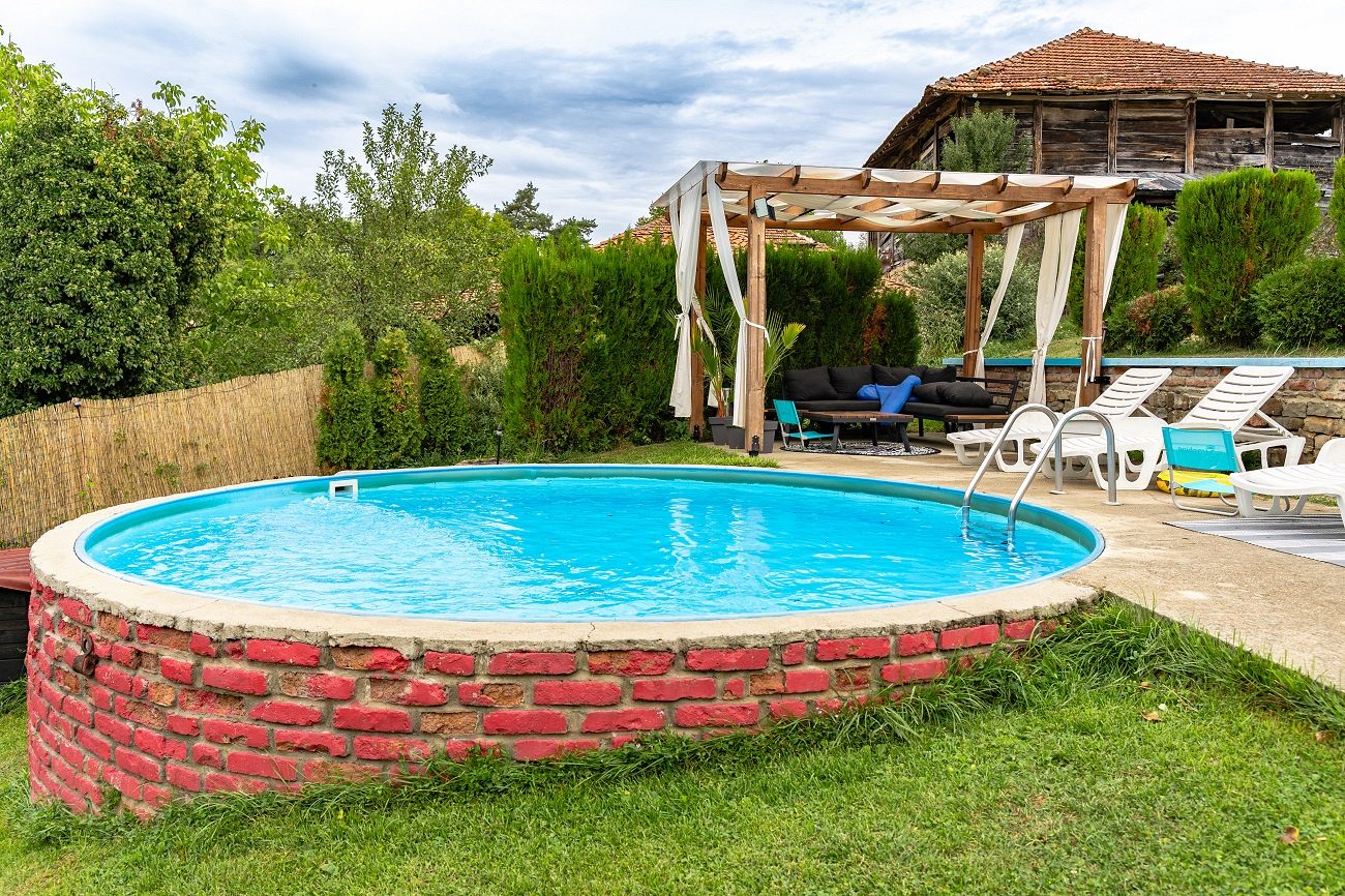 - Разполагаме със сезонен басейн с шезлонги и градински сетове - перфектно място за разхлаждане и слънчеви бани през топлите дни;