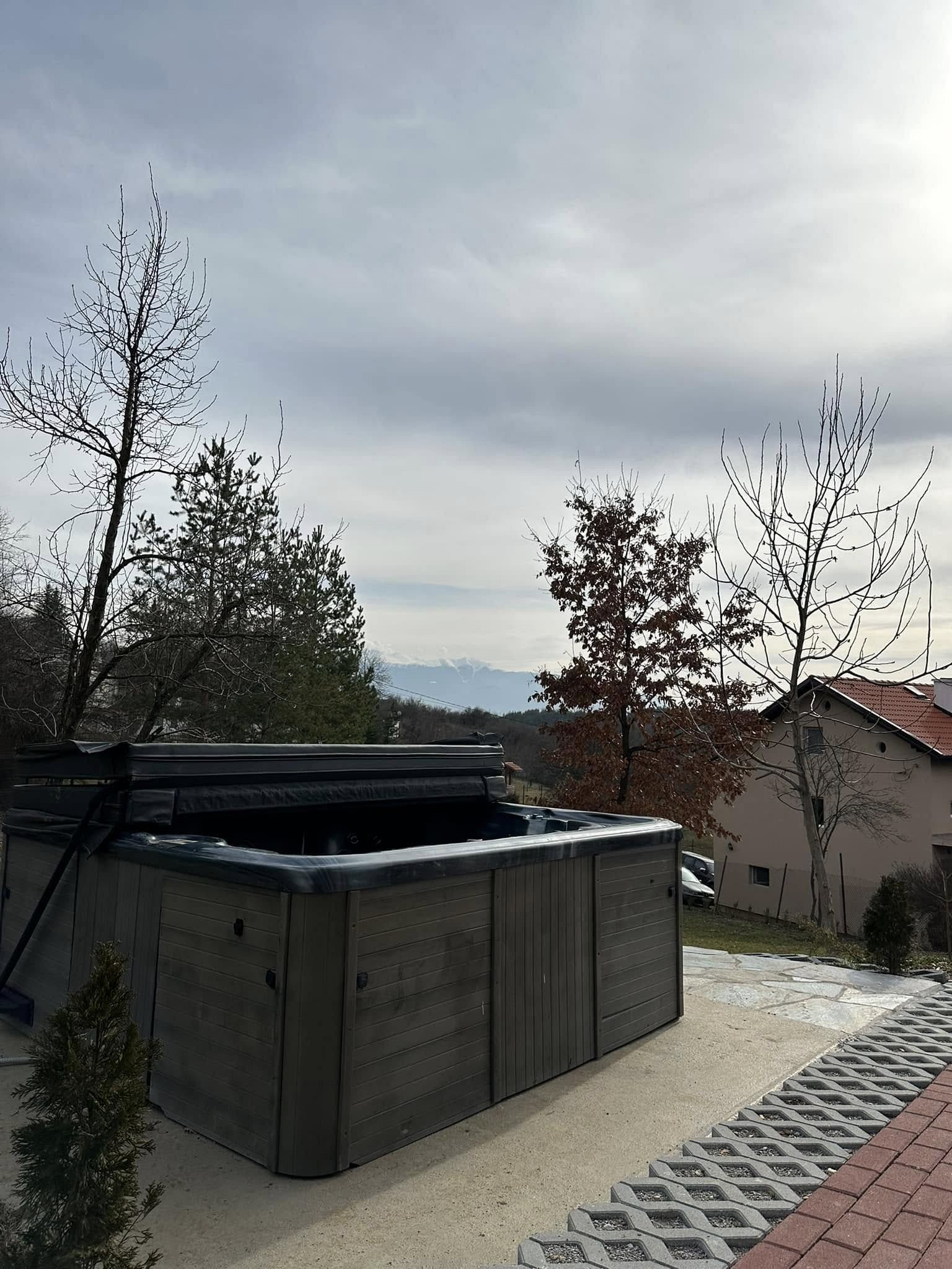 Външното пространство впечатлява с просторен двор, от който се разкрива панорамна гледка към Рила; с барбекю-зона с навес и маси - идеална, както за отдих, така и за весели събирания на открито. В 8-местно джакузи можете да разпуснете и да се порадвате на слънчевите лъчи или да се сгреете в студените дни. За малчуганите има детска площадка с люлка, пързалка, катерушка и два хамака.