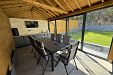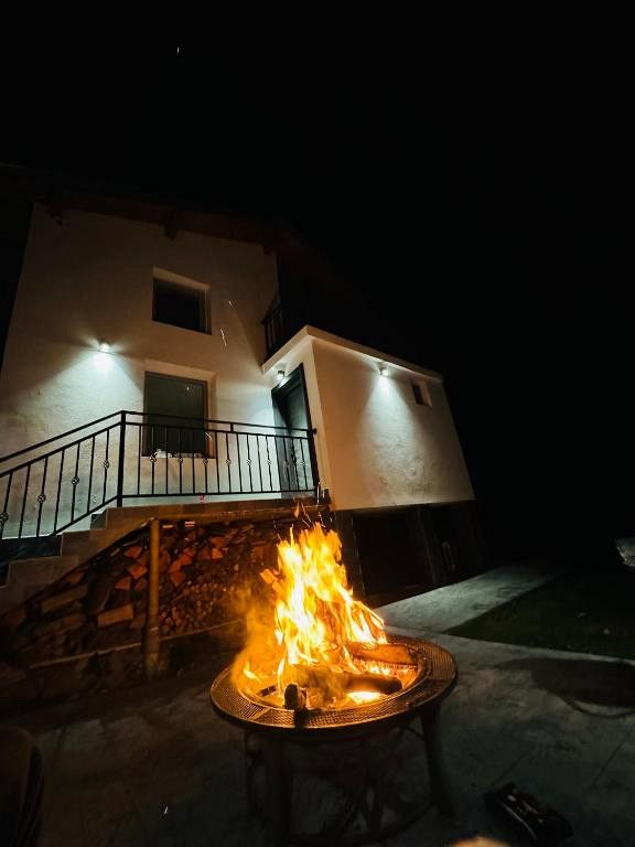 Дворът е просторен и зелен. В него ще откриете целогодишно джакузи и външна зона за хранене тип лятна кухня - обособена за използване и в зимния период. Тя разполага с маса и столове, посуда, хладилник, фризер, барбекю на дървени въглища и камина, а за развлечение и забавление - тонколона и телевизор. Пространството е подходящо, както за приятелски събирания, така и за семейни вечери. Гледките от двора към планината са вдъхновяващи по всяко време на деня, така че да усещате синхрон със заобикалящите пейзажи.