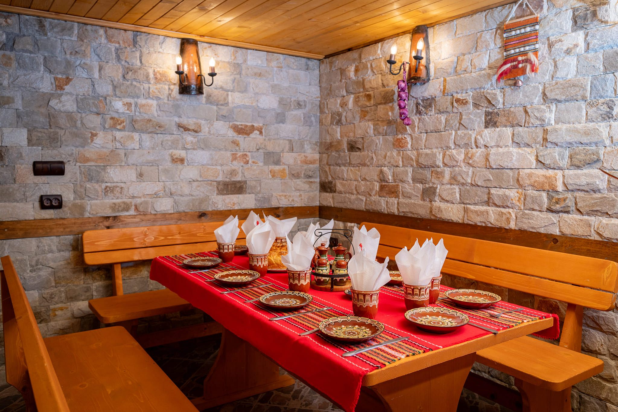 - механа с камина и кухненски бокс (хладилник, мивка и шкаф с посуда) - на приземния етаж;