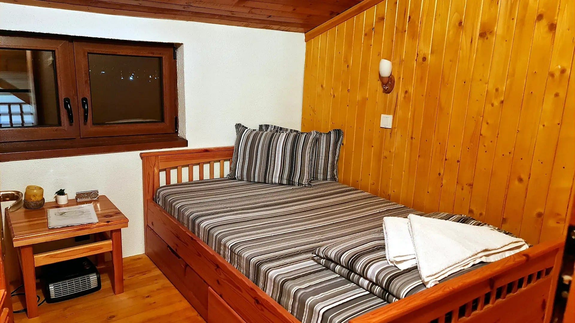 Вито стълбище отвежда към втория етаж, където са разположени две спални помещения. Всяко от тях е обзаведено с по 2 двойни легла с висококачествени италиански ортопедични матраци Magniflex. За най-малките гости са осигурени кошарки за спане.