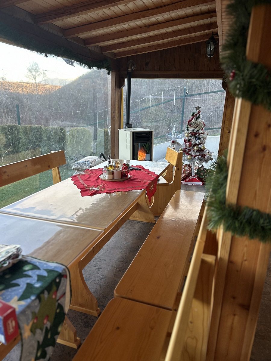 Гостите разполагат с голяма веранда с 16 седящи места и панорамна гледка към планината. През студените месеци верандата е затворена с ветробрани и отоплявана с камина на пелети.