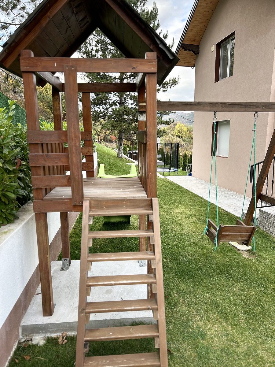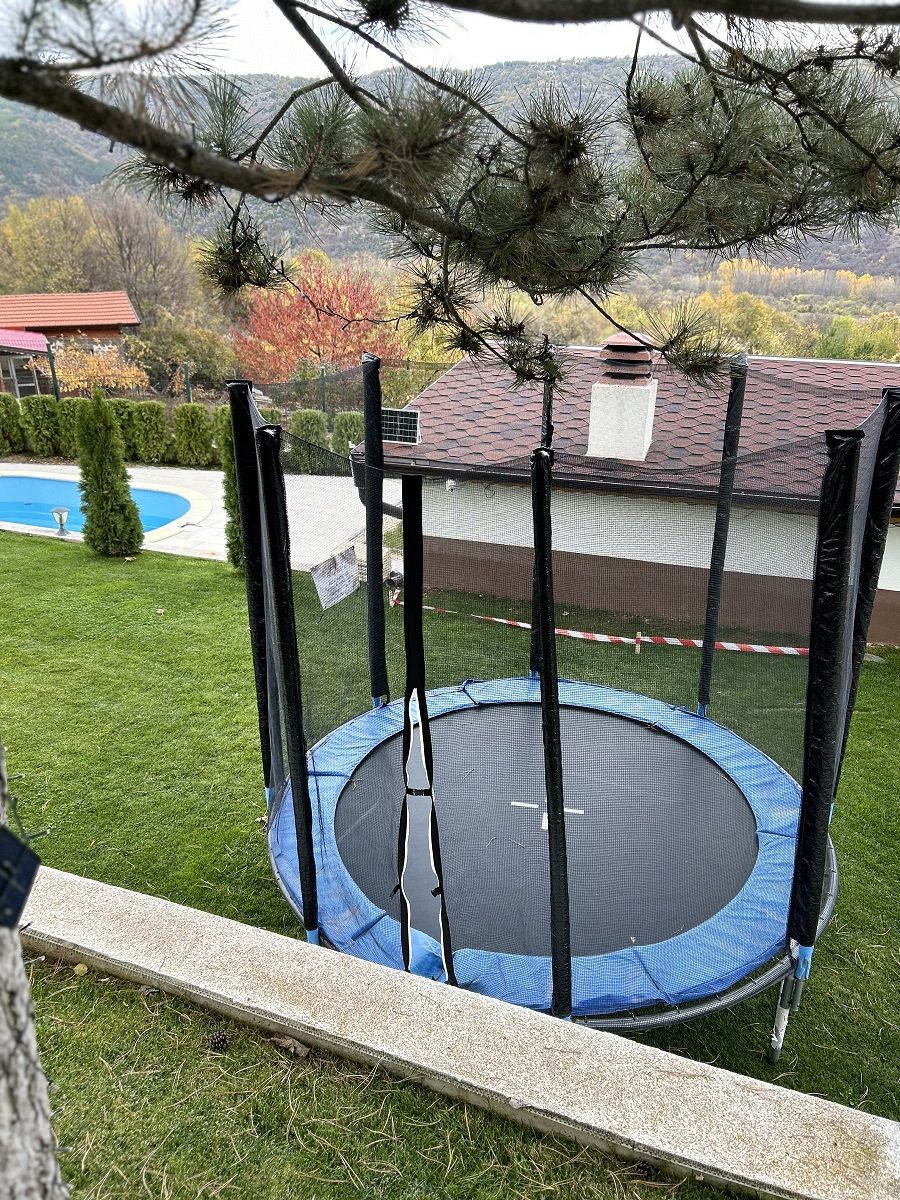 Вилата предлага още лятна кухня, барбекю на дървени въглища, просторен озеленен двор с детска площадка, батут, дартс, мини футболна врата, летен душ, PS4.