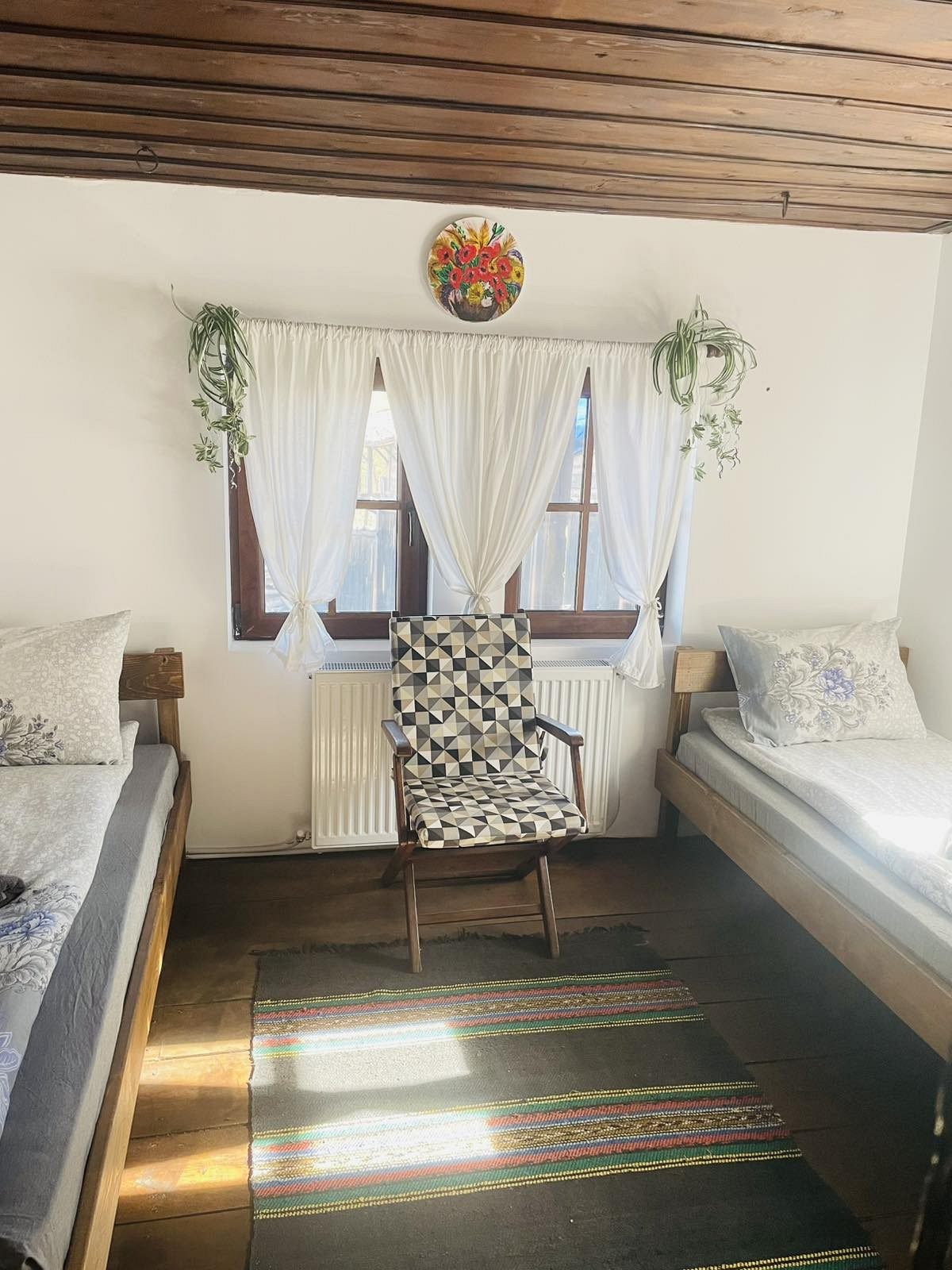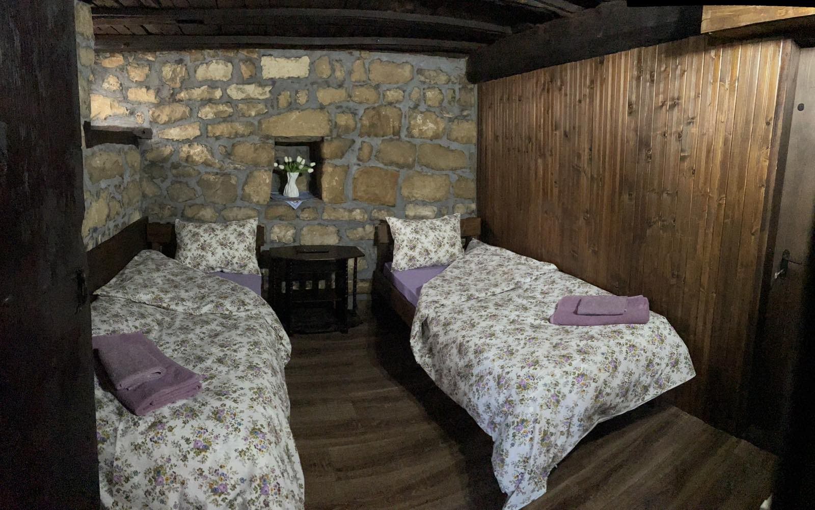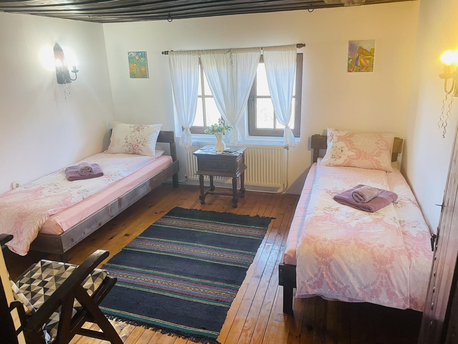 - 1 двойна стая с 2 единични легла и телевизор;