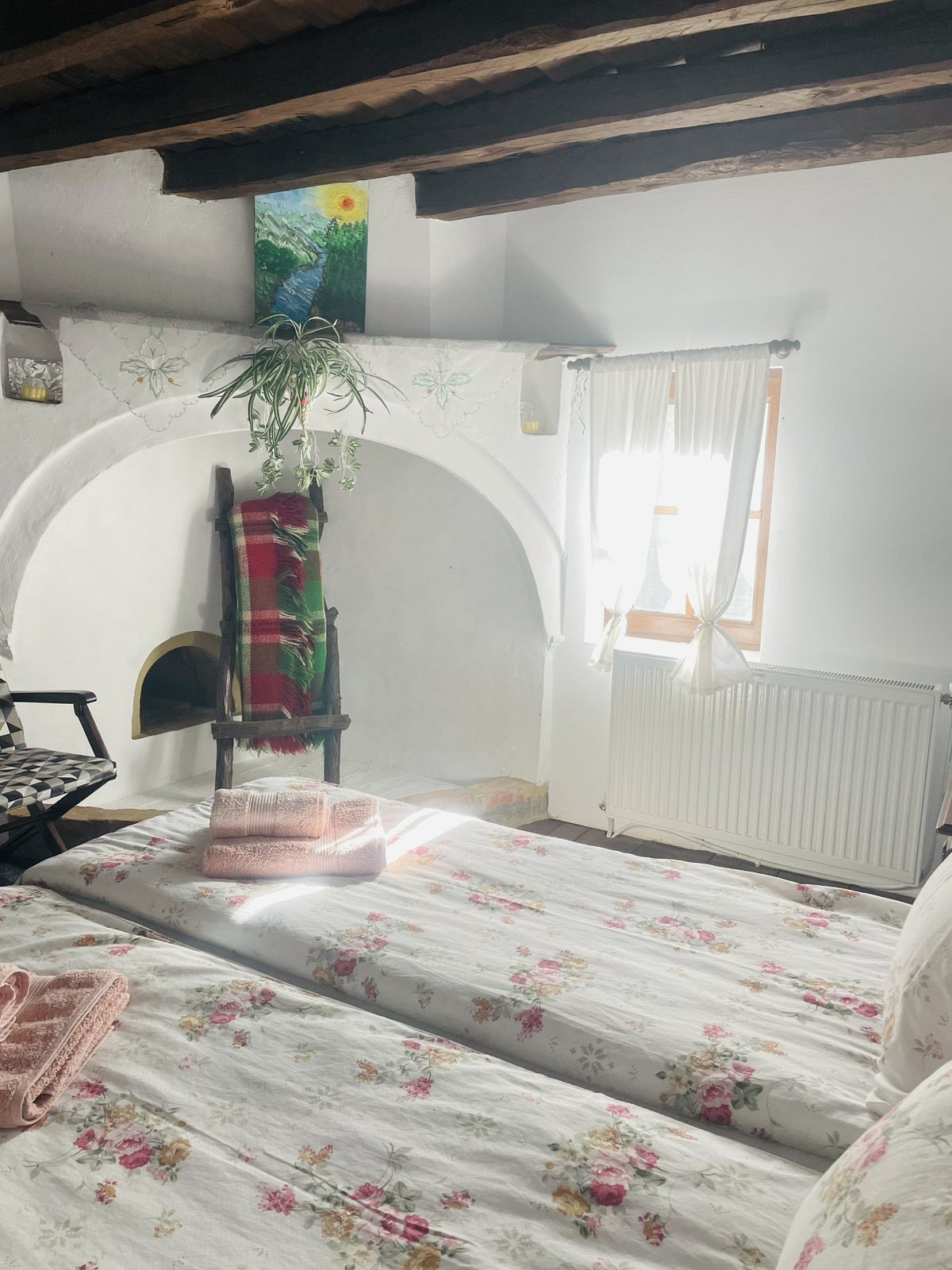 На втория етаж са ситуирани още 4 двойни стаи, антре и 1 санитарен възел с баня и тоалетна. До етажа се стига по вътрешни и външни стълби. Стаите са запазени в автентичното си разпредление, като две по две са преходни и удобни за настаняване на семейства с деца. В две от тях ще намерите характерните за онова време джамали, които днес са с декоративна функция. На етажа има голям и малък чардак (с масички и столчета), откъдето се открива невероятна гледка към невероятната околна природа и планините.