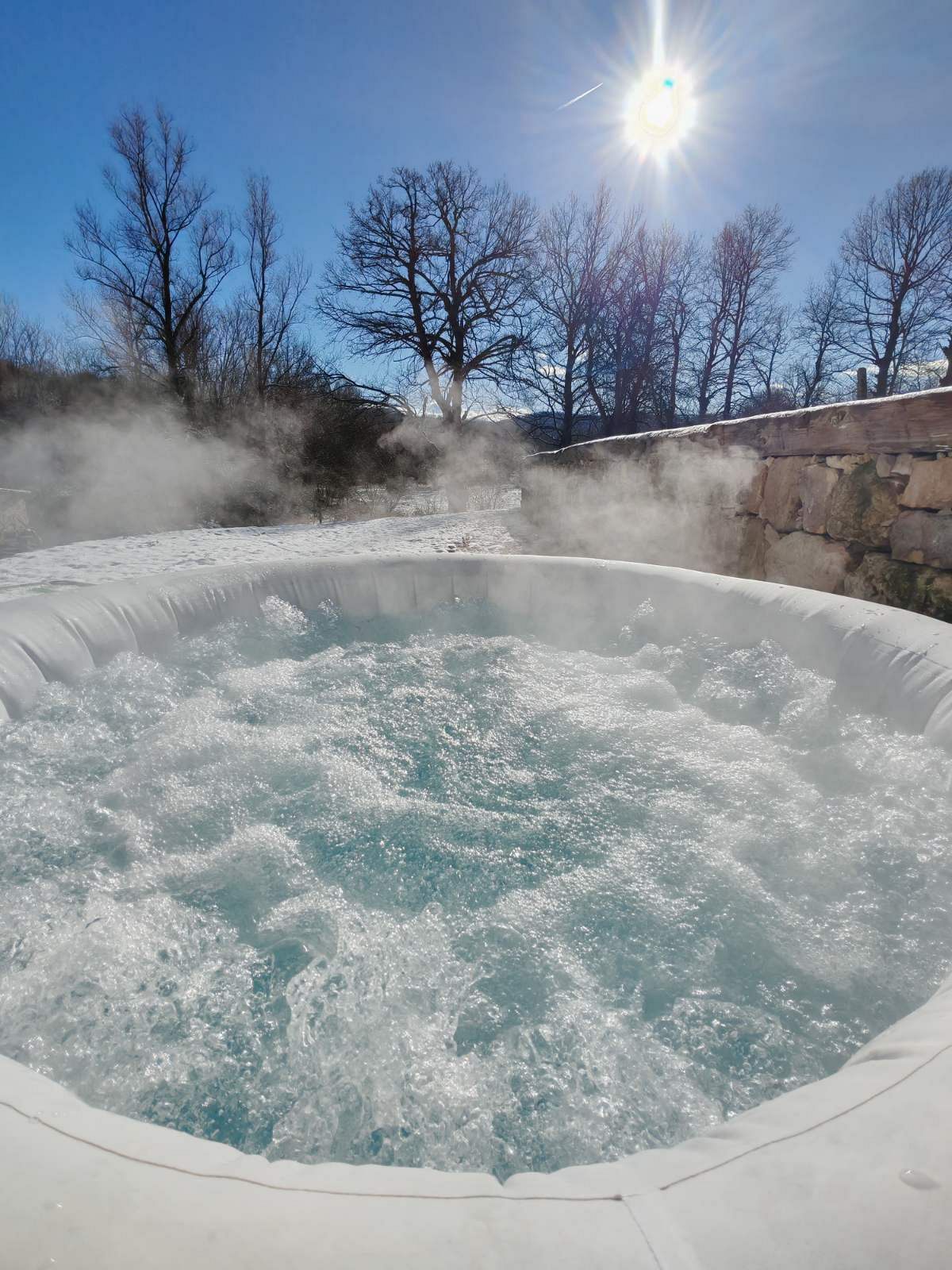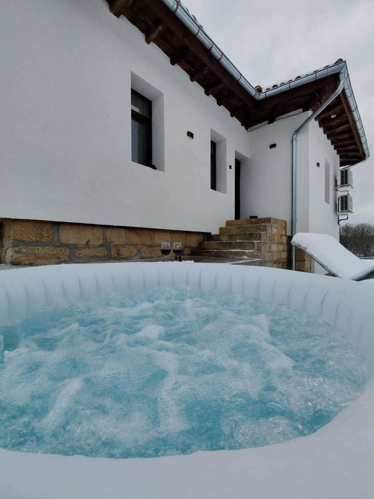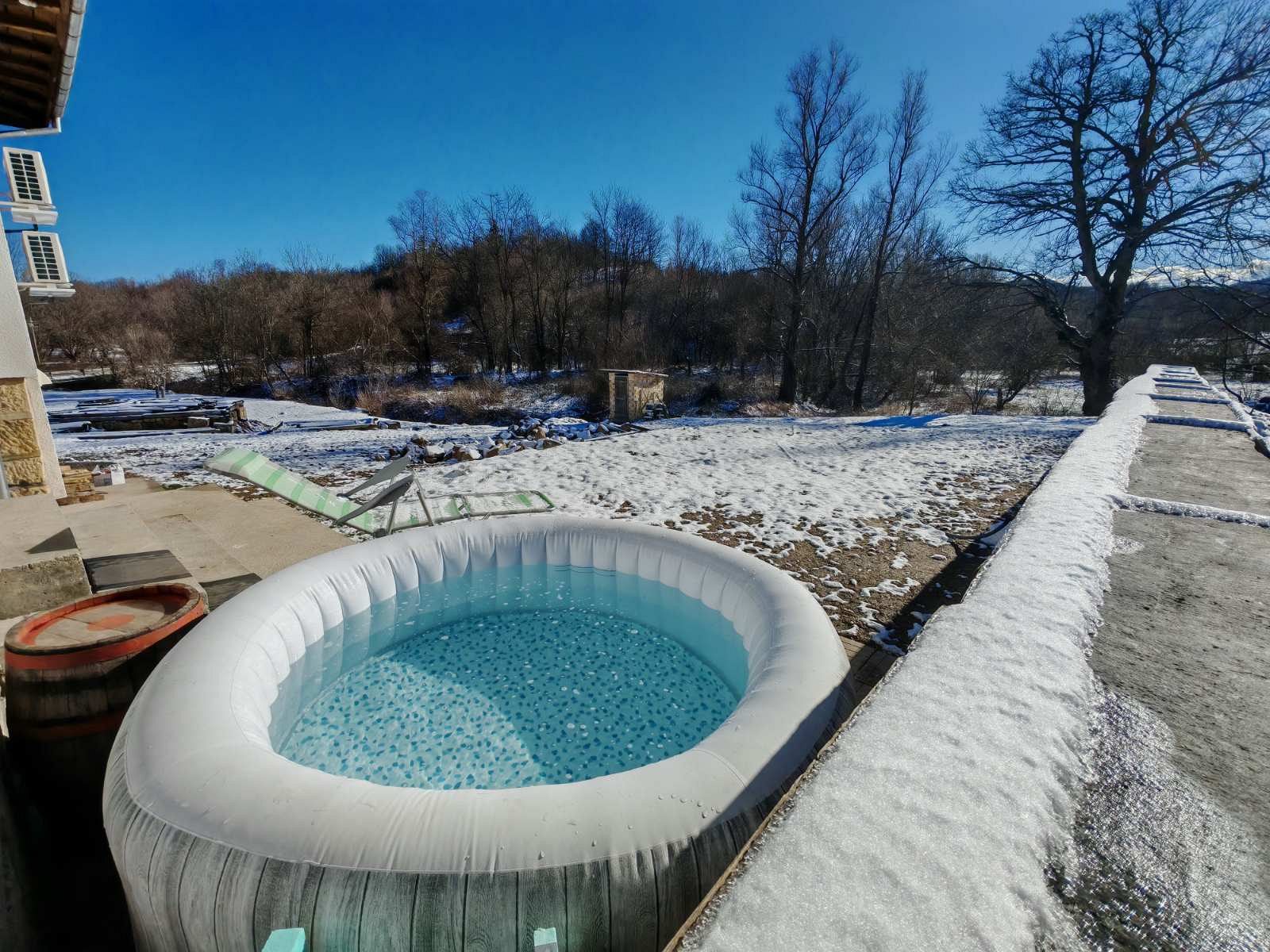 Отвън ви очаква просторен двор, впечатляващ с красива гледка - идеално място за споделено време на открито; кът за хранене с маса и столове; преносимо барбекю на дървени въглища. През летния период може да се разхладите в басейна, а целогодишно - да релаксирате в джакузито.