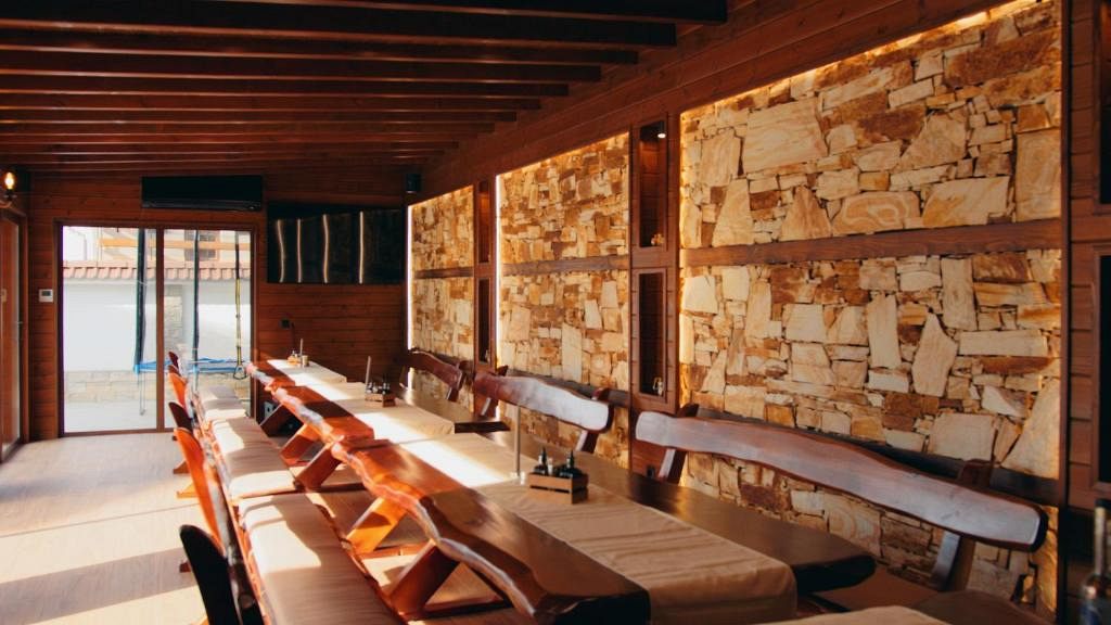 В отделна постройка на ваше разположение е барбекю-зона с камина и с 35-40 места, подходяща и за по-големи компании.