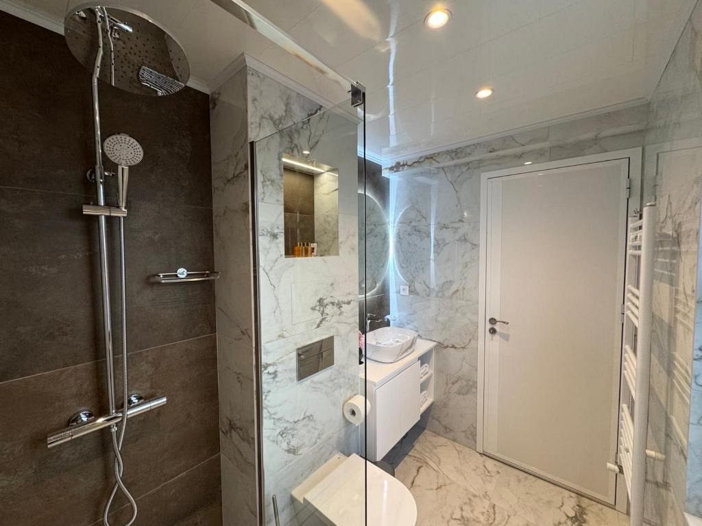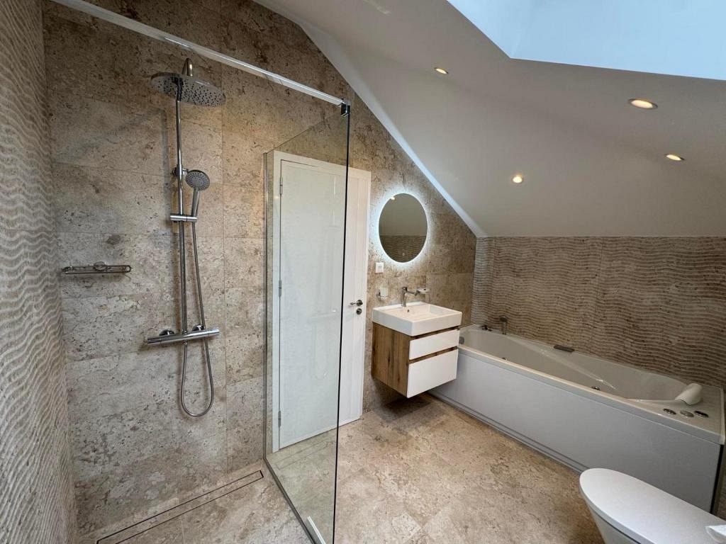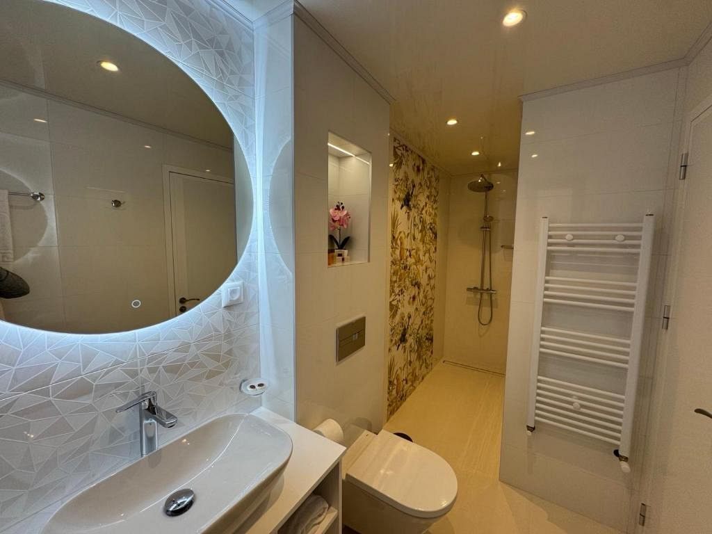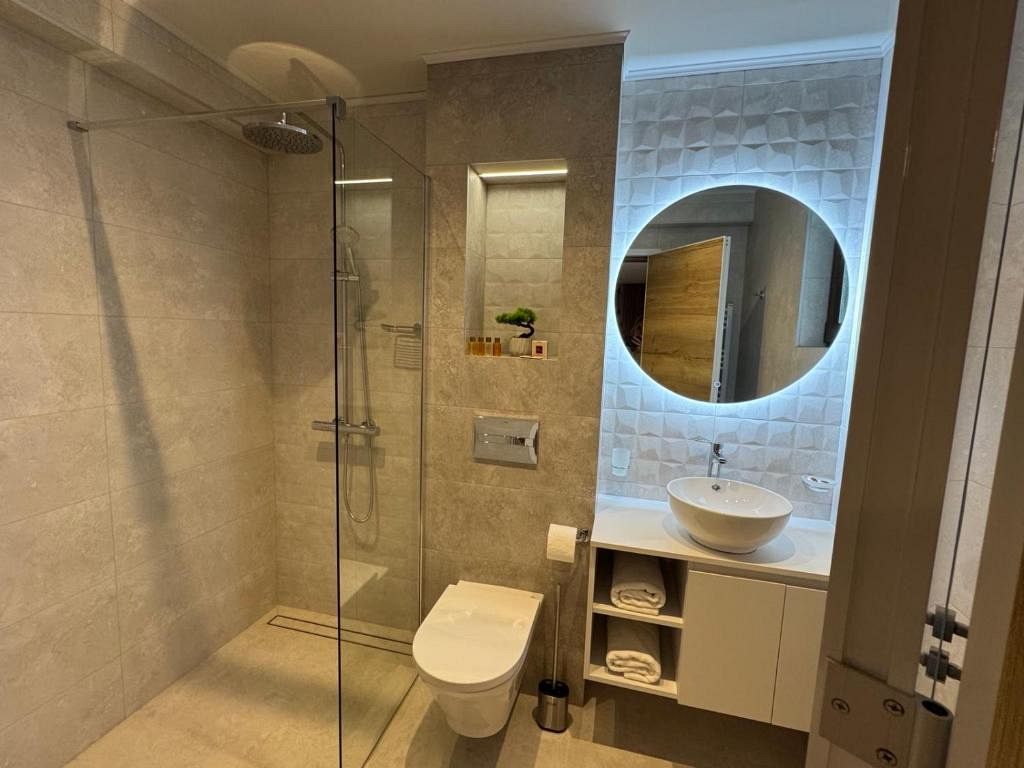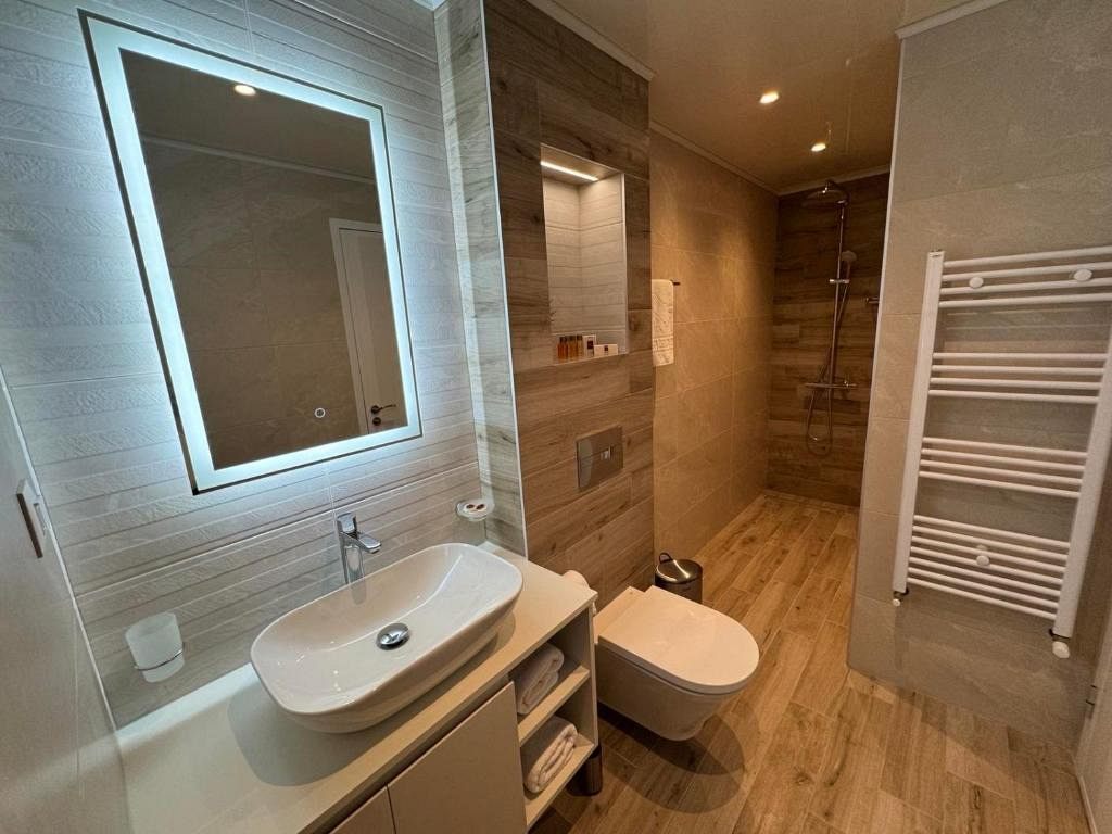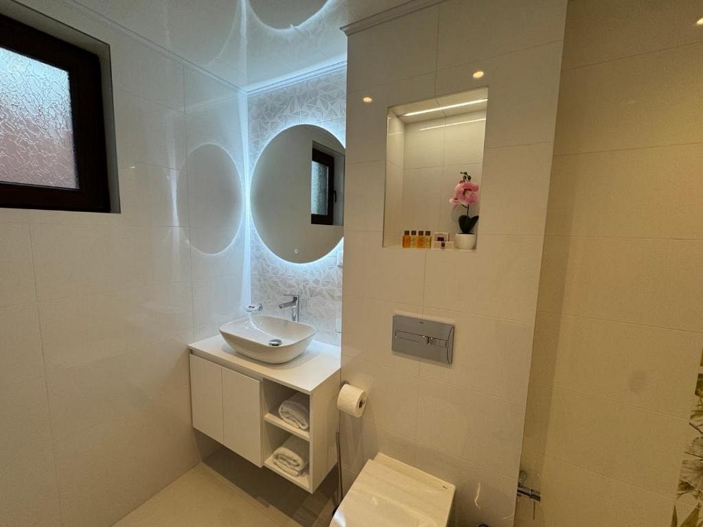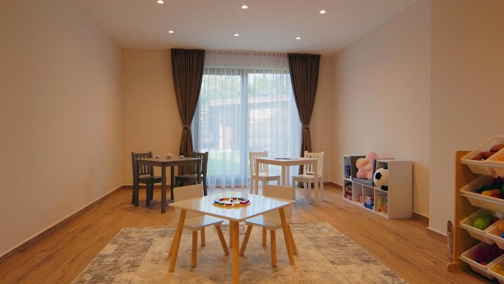 На партерния етаж ще откриете просторен дневен тракт на 2 нива - голяма трапезария с капацитет 28 места, кът с мека мебел и телевизор с пълен пакет ТВ канали, напълно оборудвана кухня, санитарен възел с тоалетна. За малките ни гости сме подготвили детски кът с различни забавления, както и 2 столчета за хранене и бебешки кошарки.