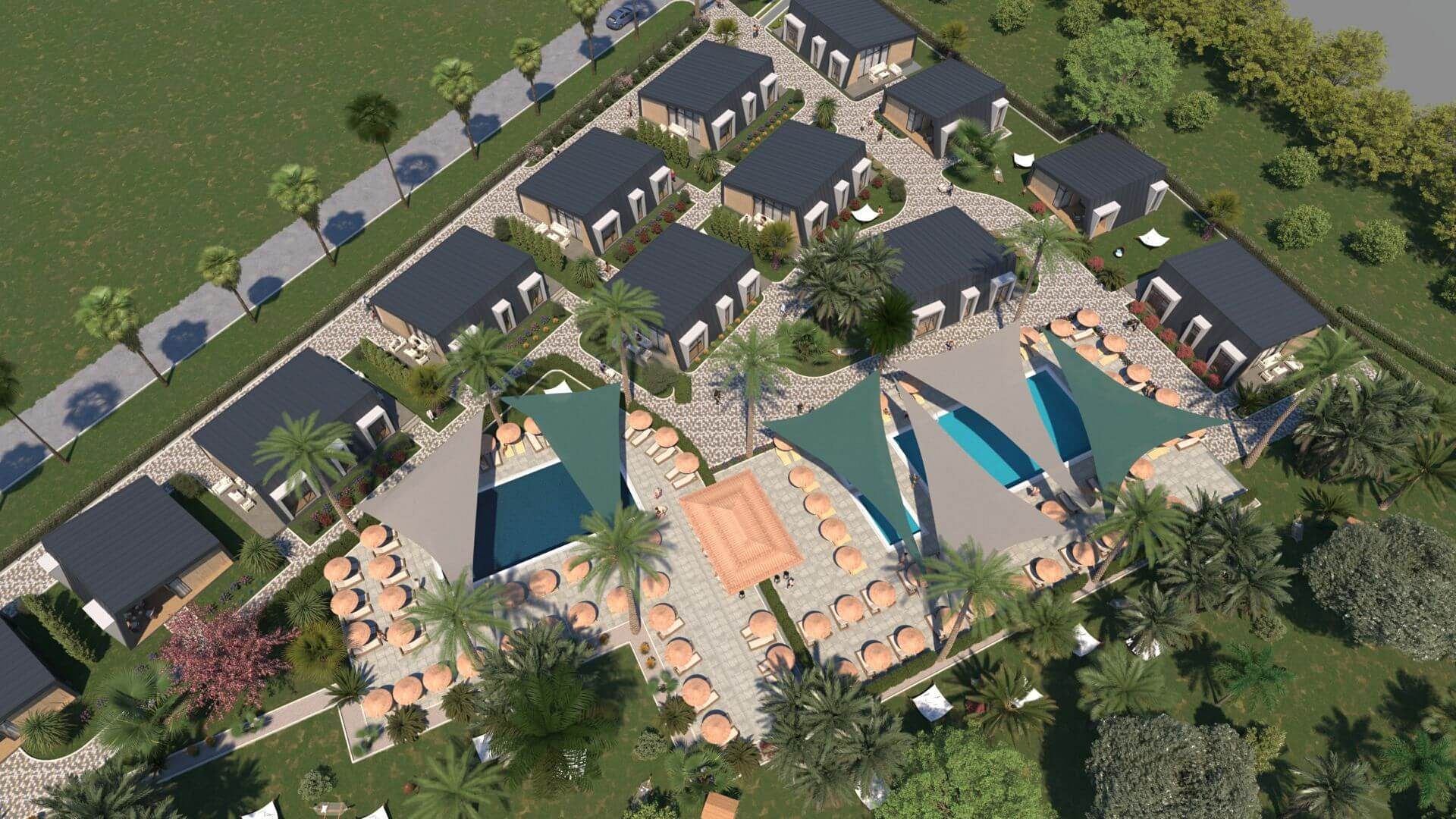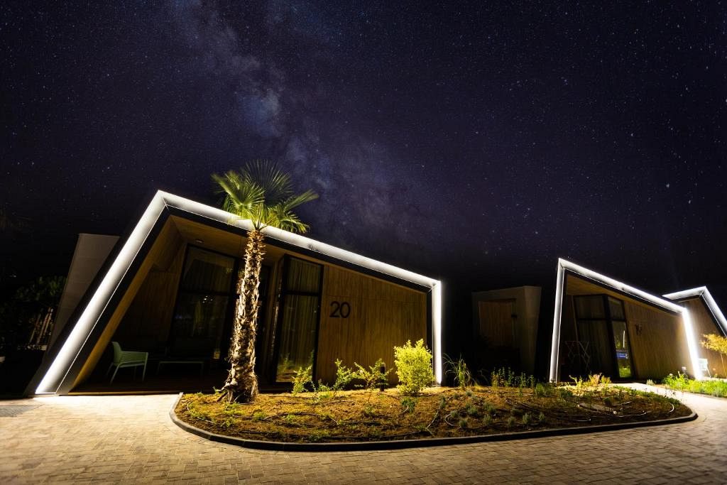 Разположен само на 700 м от центъра на града, сред тишината и свежестта на красиви градини с палмови и маслинови дървета, комплексът е истински оазис за сетивата - самостоятелни вили, апартхотел, къмпинг зона, заведения за хранене и барове, открити минерални басейни, релакс зона със закрит минерален басейн и СПА услуги, съчетаващи спокойствието на природата, силата на минералната вода и удоволствието от перфектната почивка.