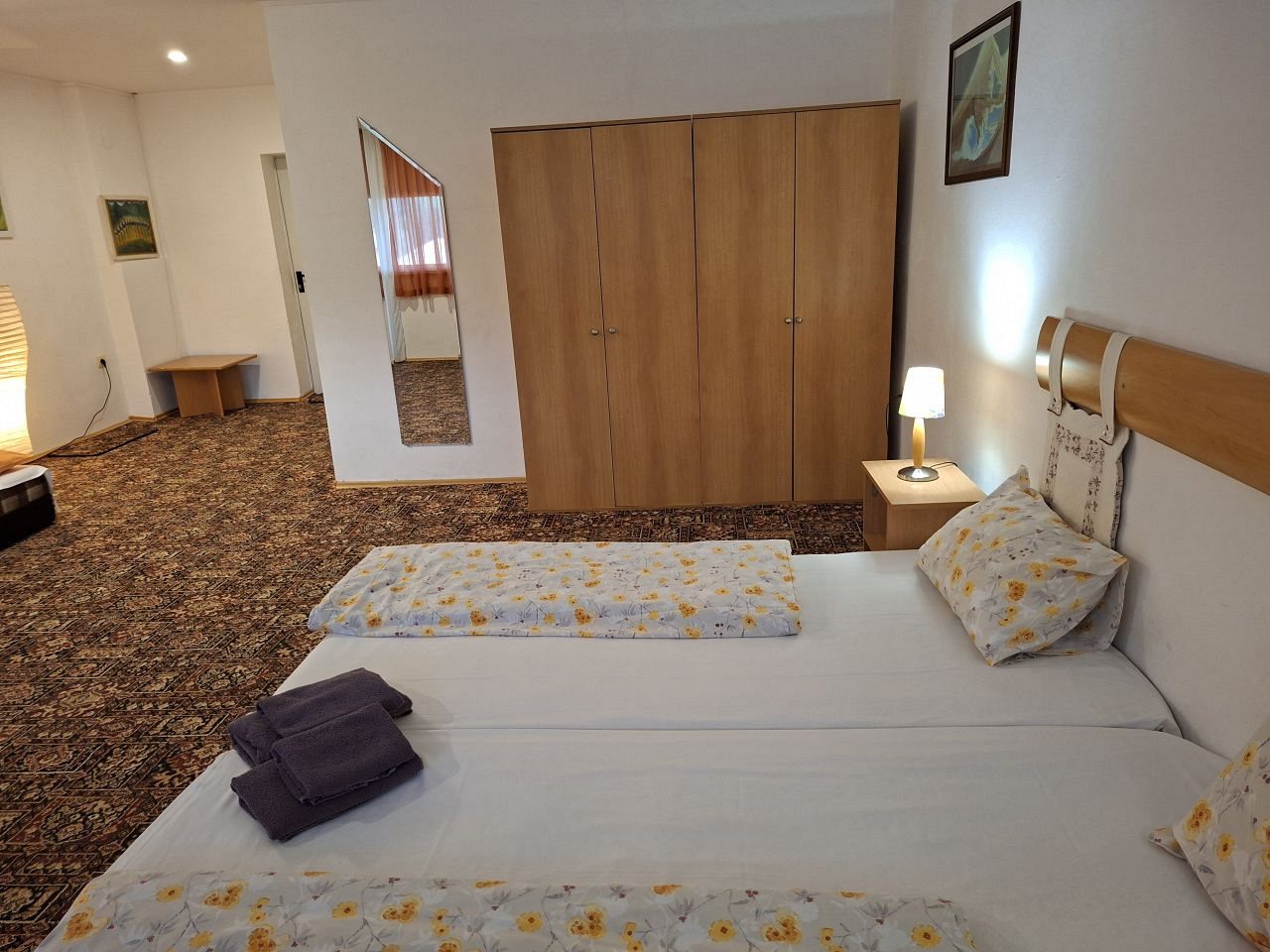 Стаите са големи, с двойни легла, гардероби, телевезор със сателитна телевизия (600 телевизионни и 300 радиопрограми); самостоятелен санитарен възел (с вана, душ-кабина или душ). Дългите чардаци, на които се излиза от стаите, позволяват да се радвате на красиви гледки.