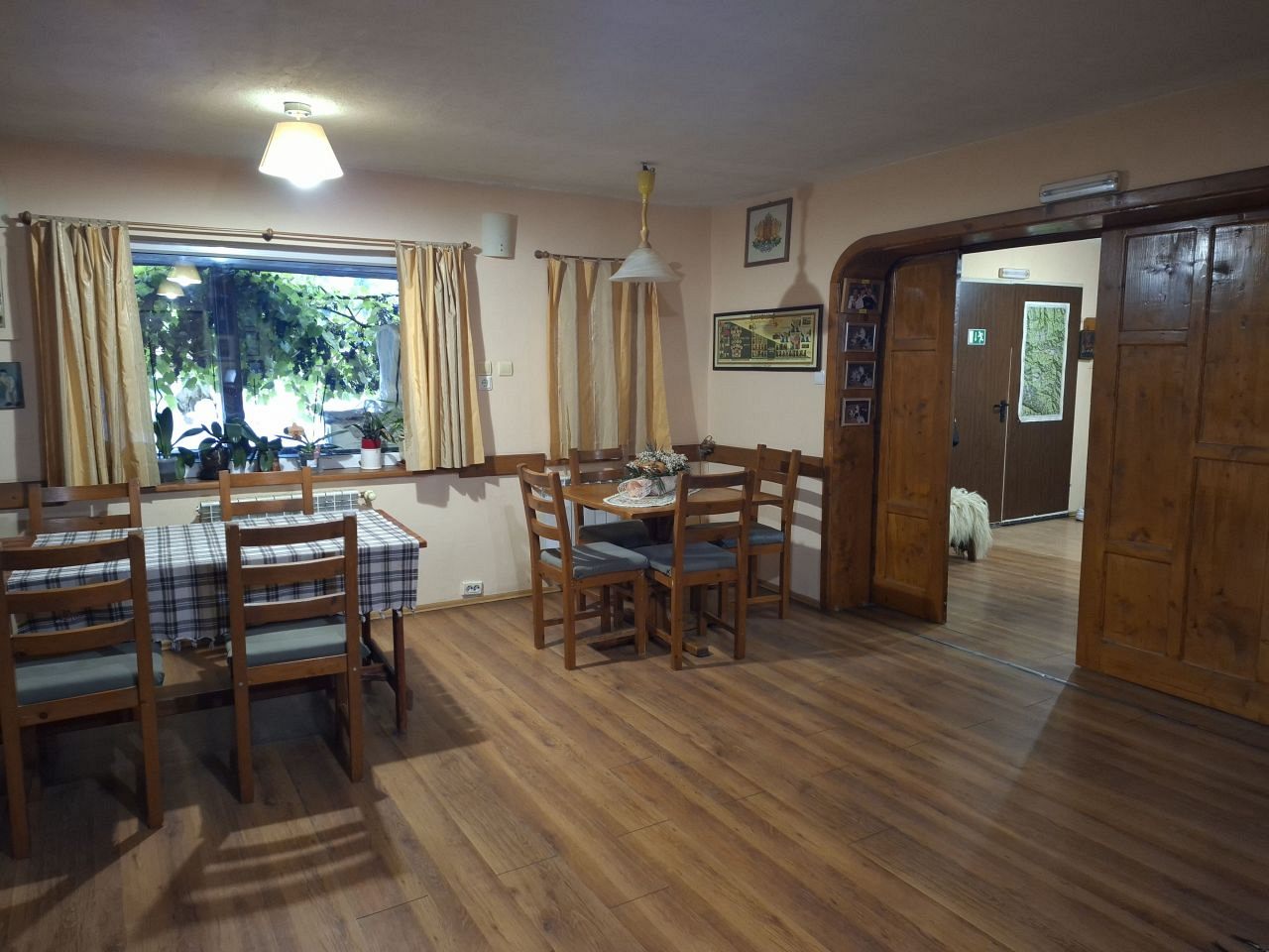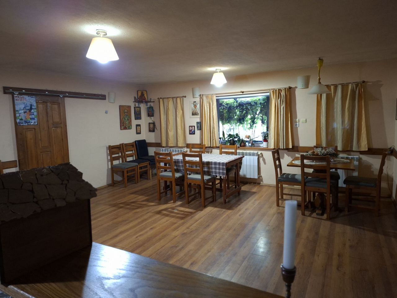 В просторната трапезария с камина може да се насладите на спокойни семейни вечери, весели празнични поводи или други забавни събирания. Ако желаете сами да приготвите храната си, имаме напълно оборудвана кухня, а за майсторите на пържолите - барбекю на двора. За да е пълноценна почивката Ви, предлагаме и домашно приготвена храна.