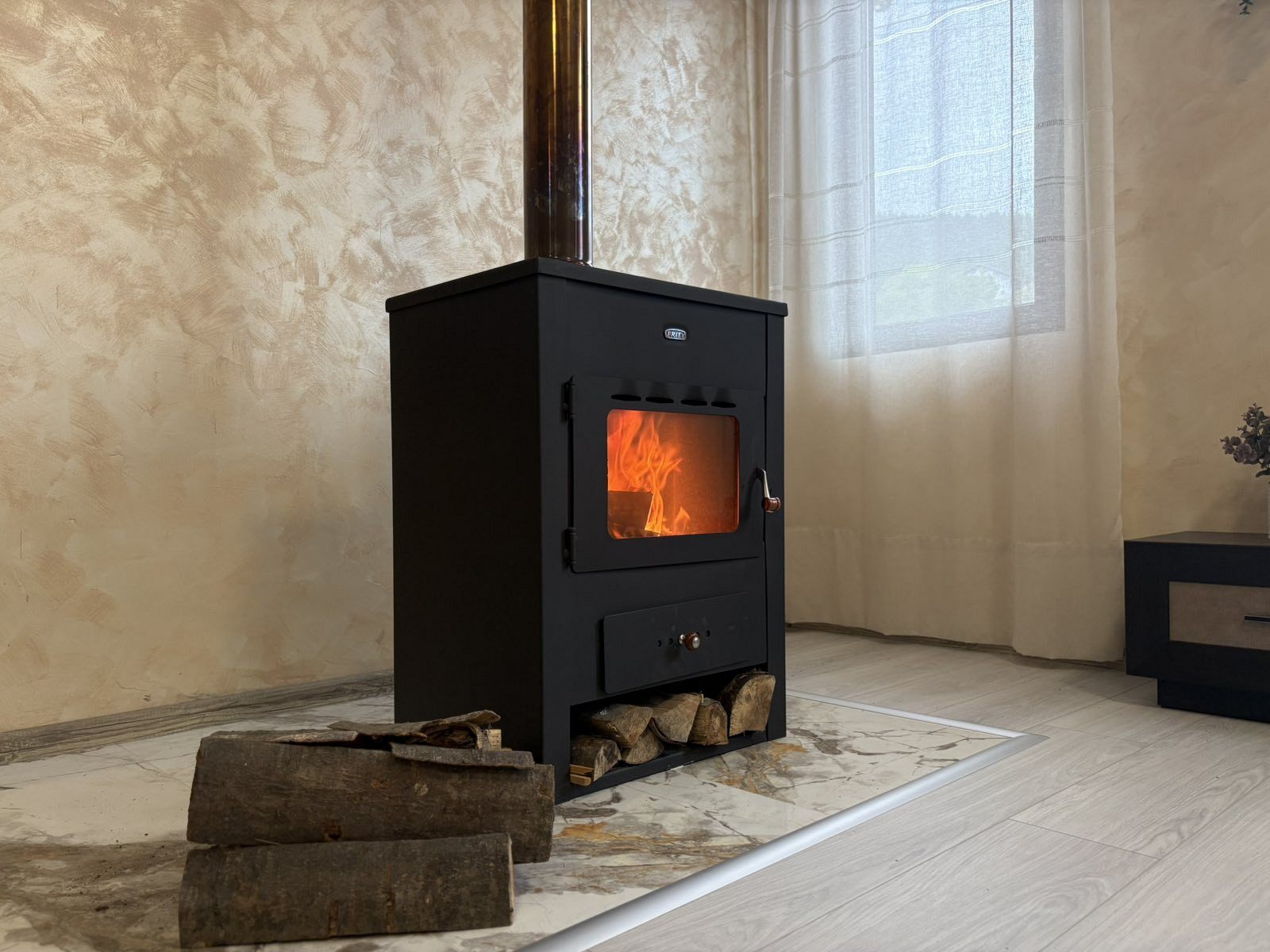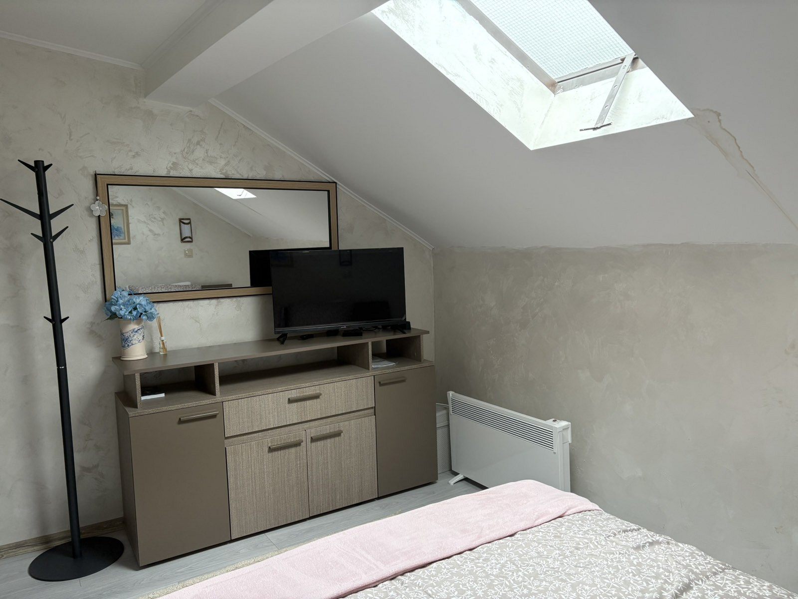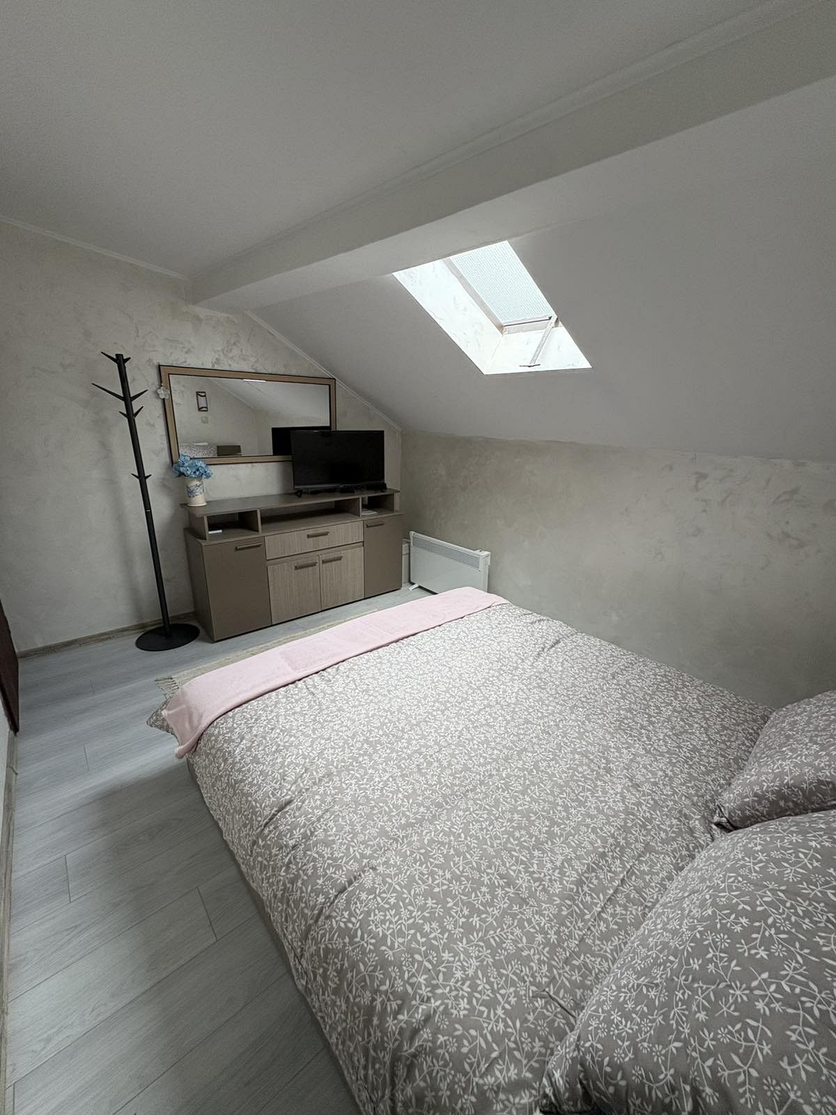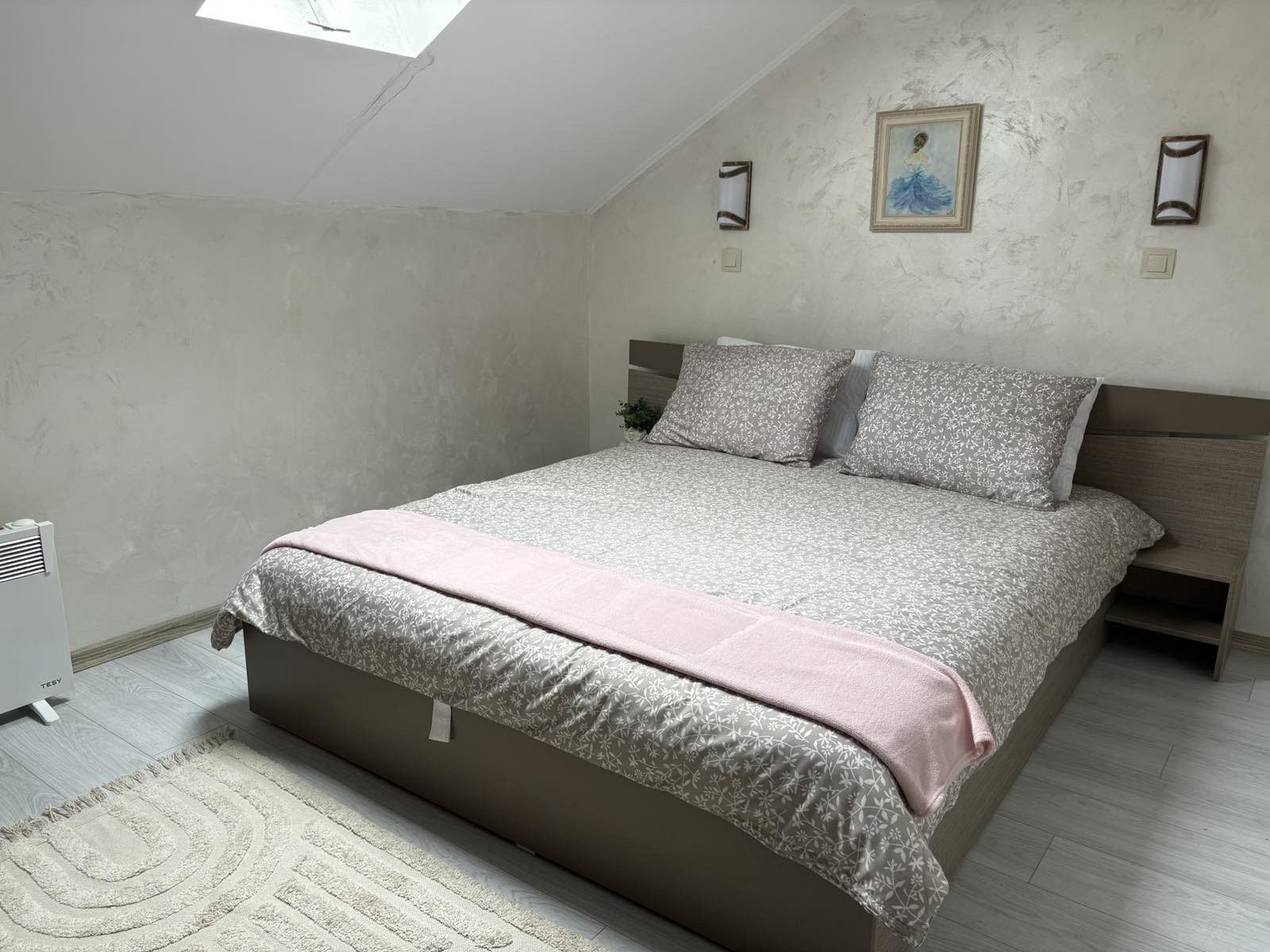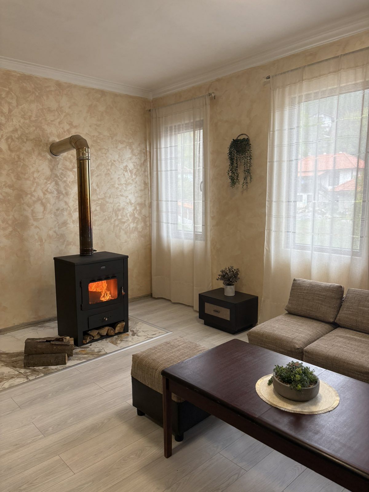 Отоплението в къщата е с камина в дневната и с електрически конвектори в спалните помещения.