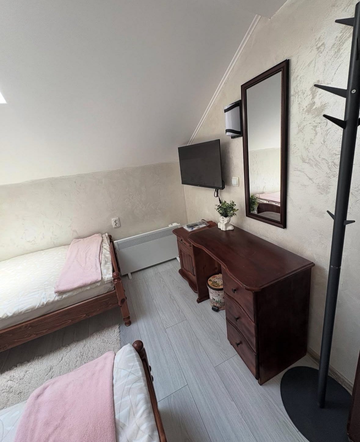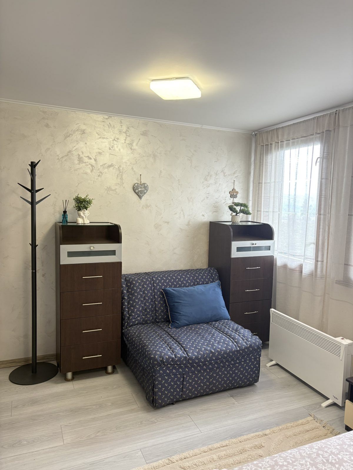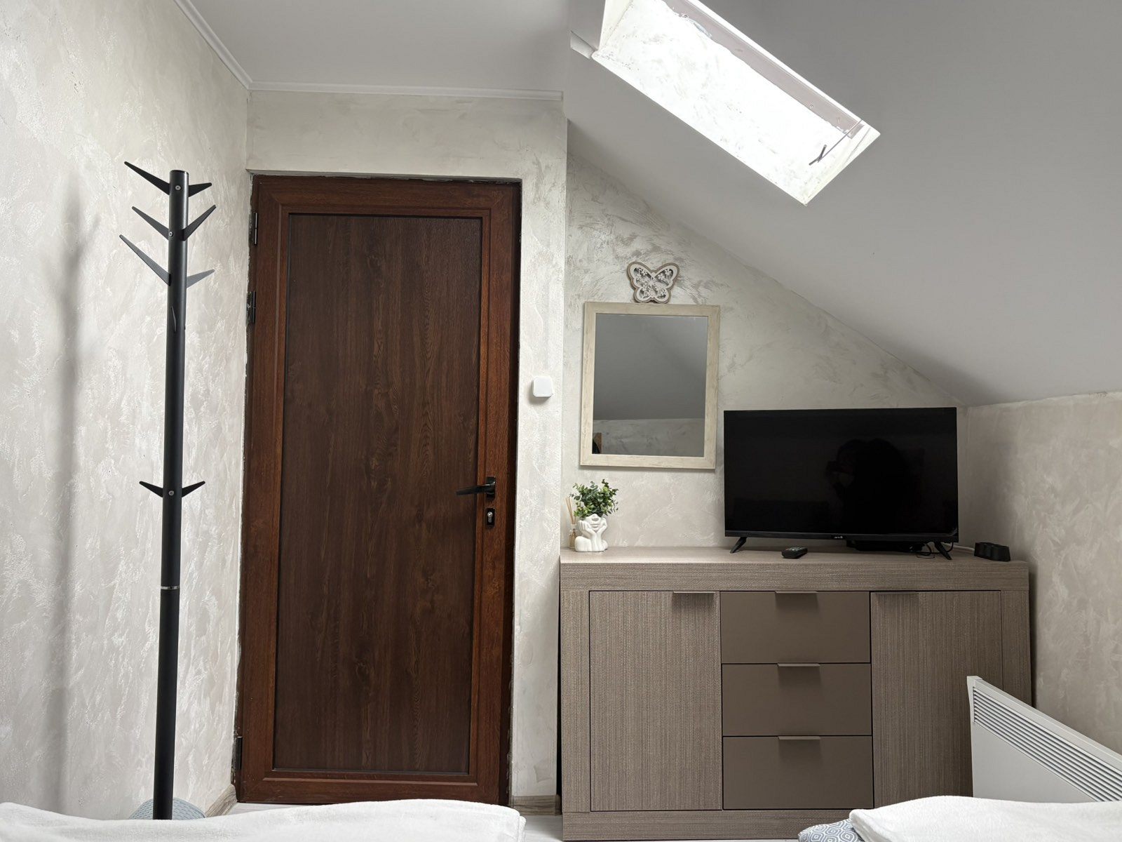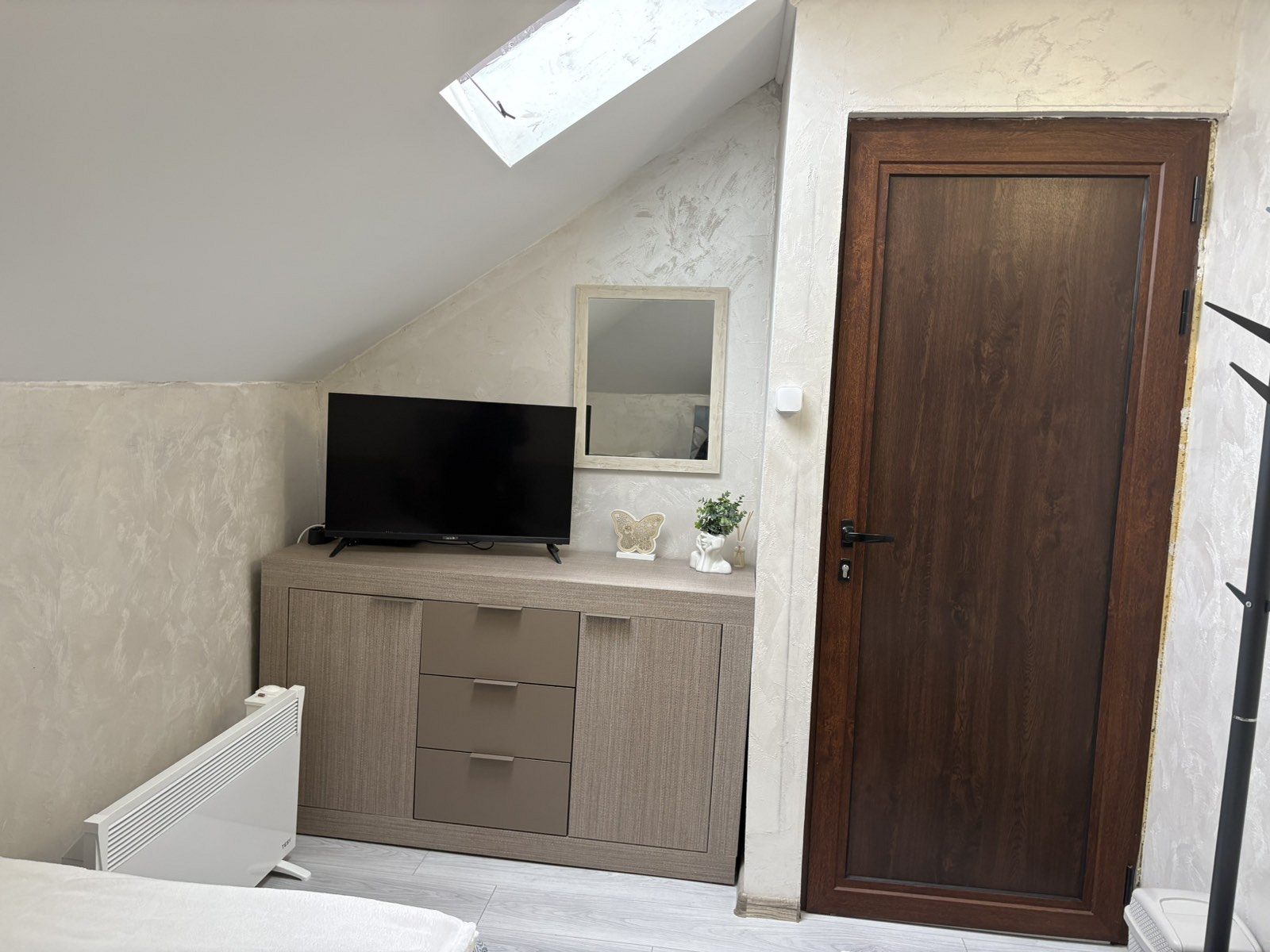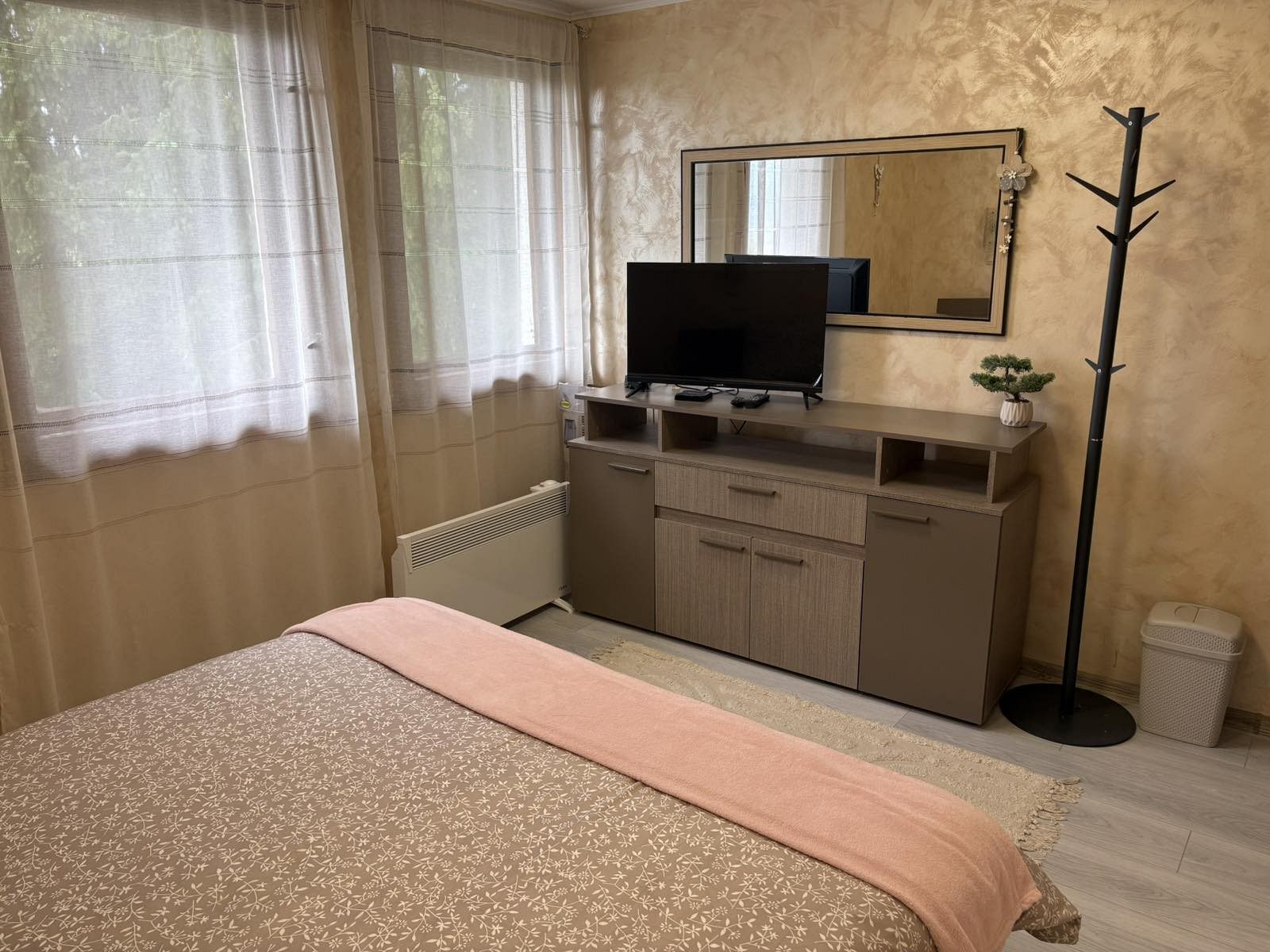Отоплението в къщата е с камина в дневната и с електрически конвектори в спалните помещения.