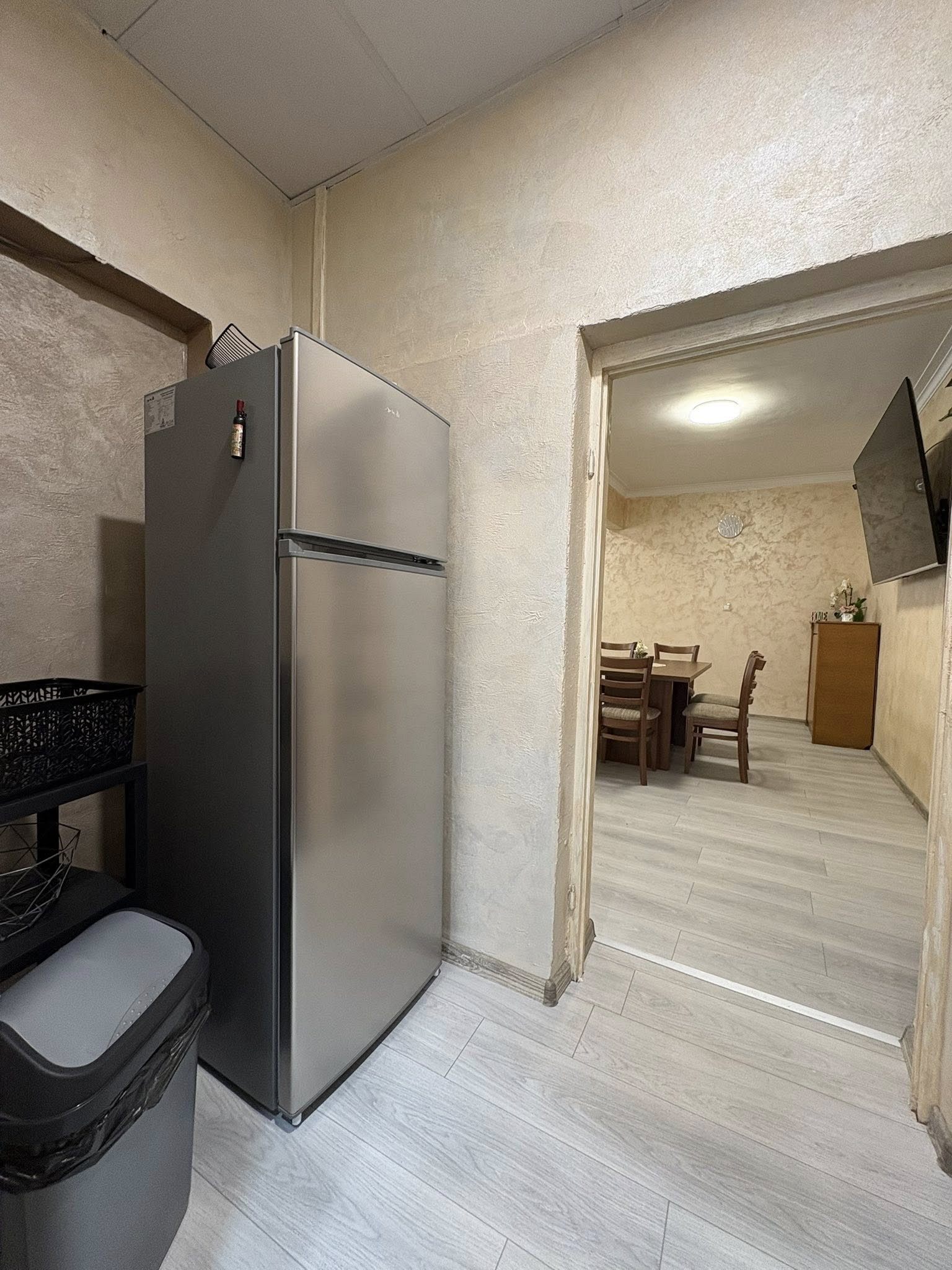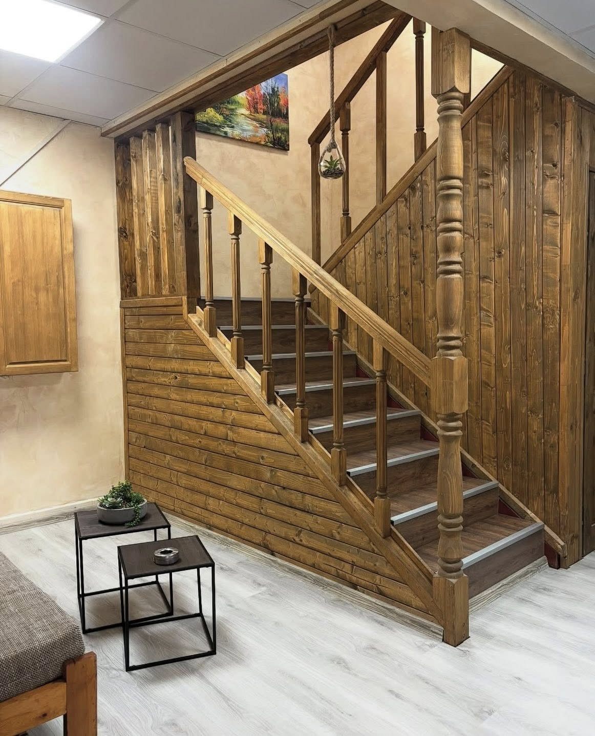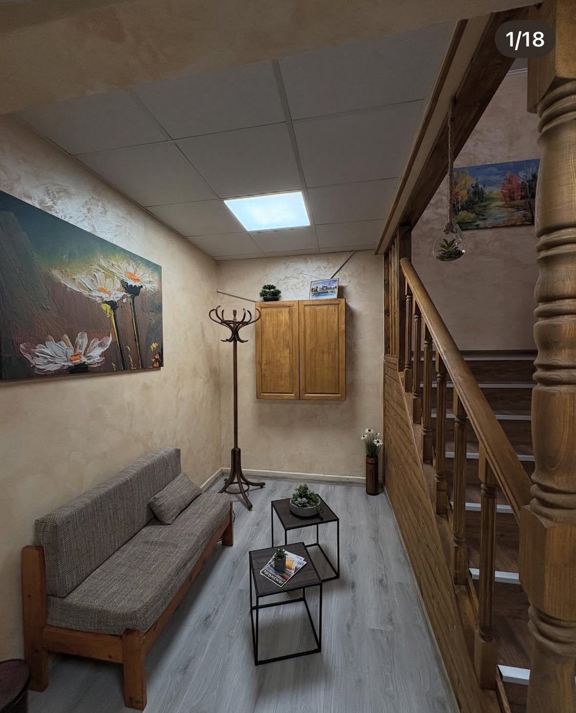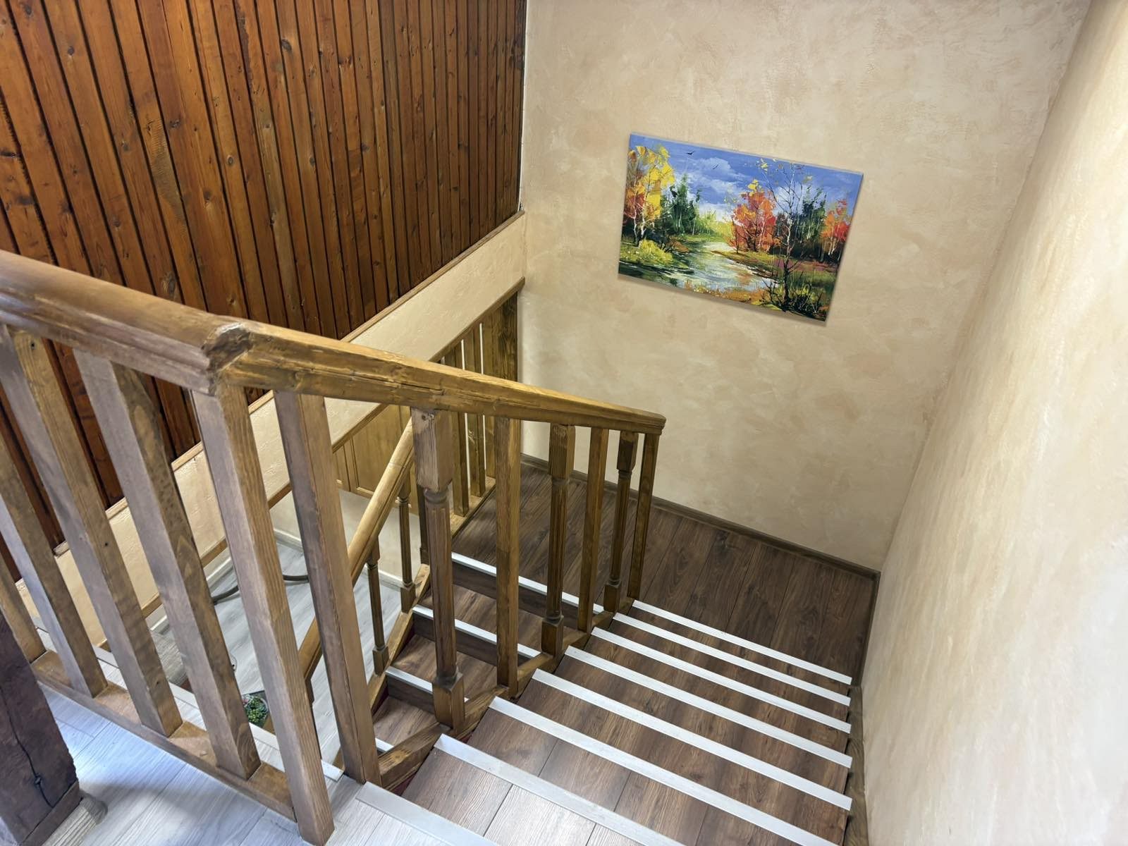 - Първи етаж - просторна всекидневна с мека мебел и камина, създаваща неповторим уют през зимните месеци; кът за хранене, подходящ за до 17 гости; напълно оборудвана кухня, в която да приготвите храната си самостоятелно, наслаждавайки се на любимите си домашни рецепти; санитарен възел с тоалетна.