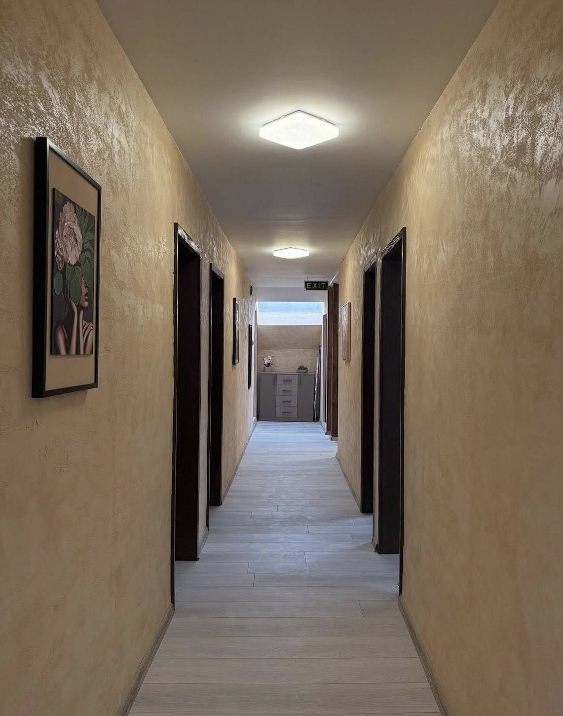 - Втори етаж - 4 двойни и 2 тройни спални помещения, всяко оборудвано с LCD телевизор с кабелна телевизия; 3 санитарни възела с баня и тоалетна.