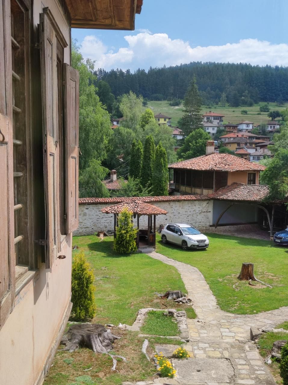 Обширният двор на комплекса е прекрасно място за почивка сред зеленина и спокойствие. Можете да се насладите на красивата природа и да релаксирате в уютната беседка.
