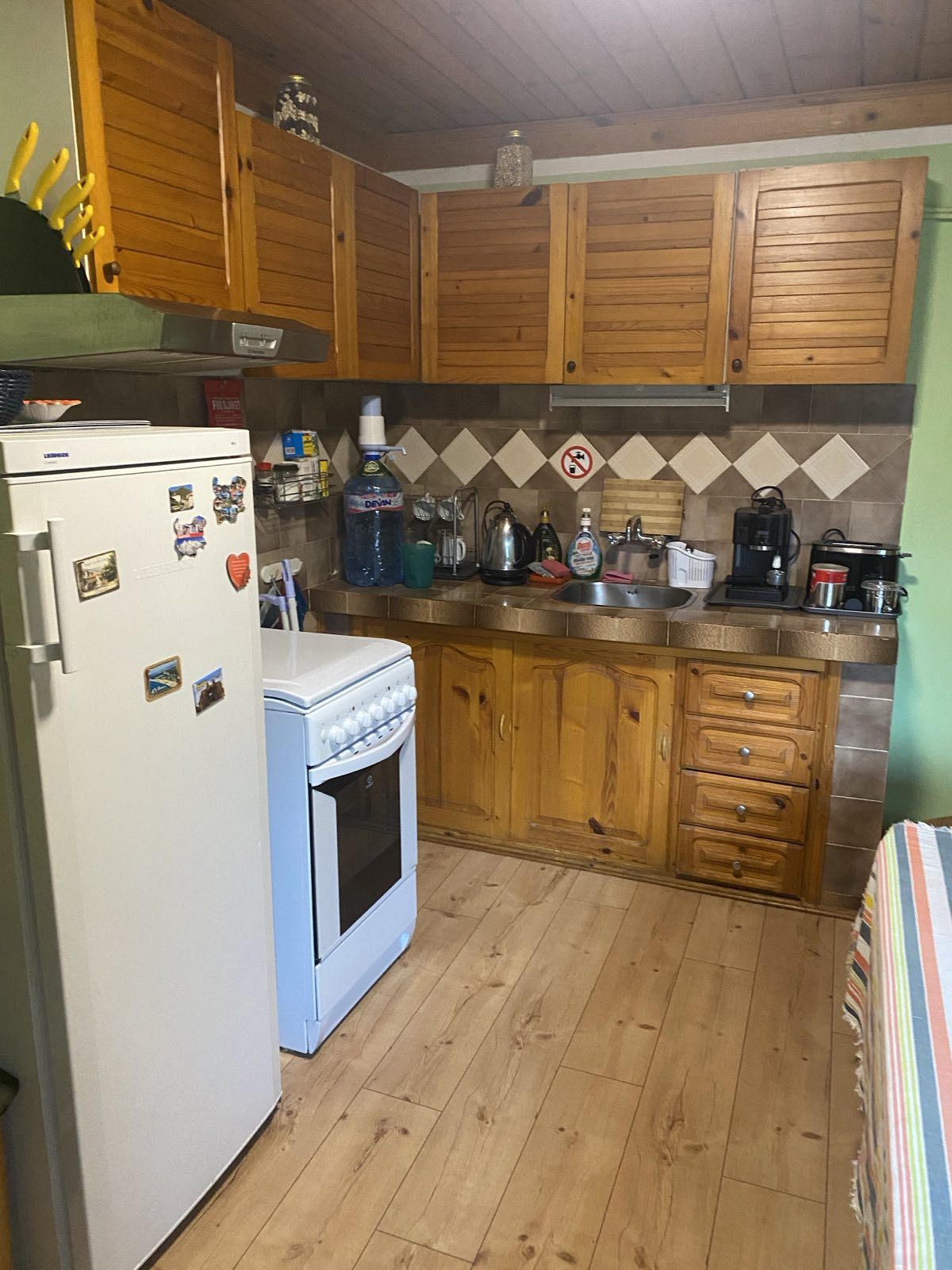 Жълта къща - с 4 спални помещения - 1 двойна стая, 2 тройни стаи и 1 едноспален апартамент за двама с трапезарен кът с хладилник.